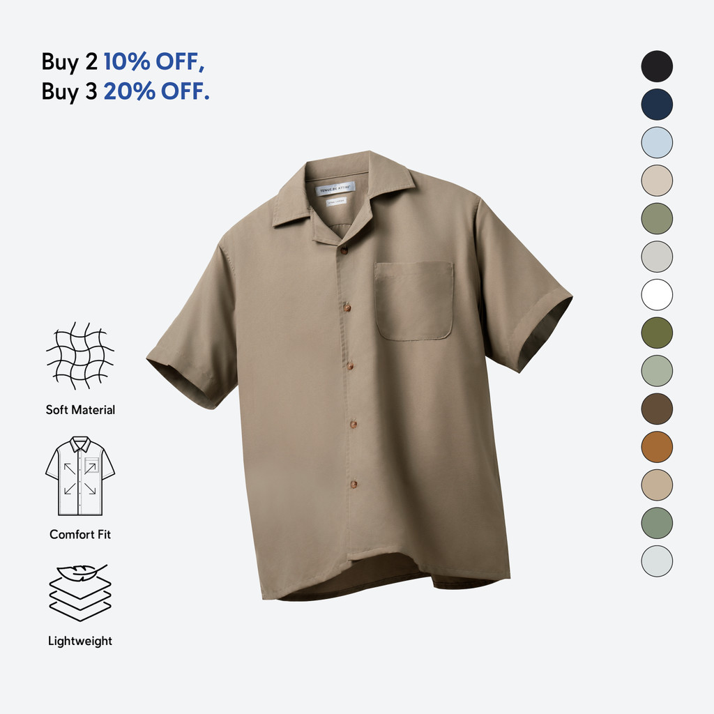 [BUNDLING] TENUE Kemeja Polos Camp Collar Lengan Pendek - CREMA - Dusk Brown