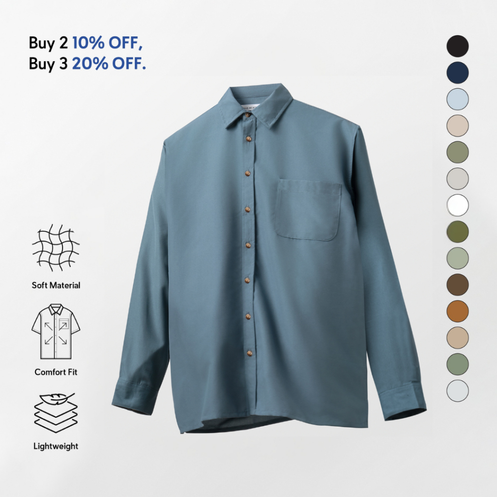 [BUNDLING] TENUE Kemeja Polos Lengan Panjang - CREMA - Steel Blue
