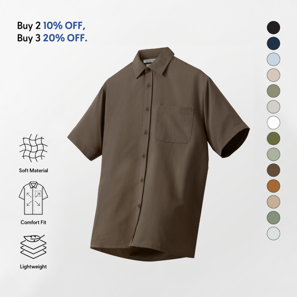 [BUNDLING] TENUE Kemeja Polos Lengan Pendek - CREMA - Moss Brown