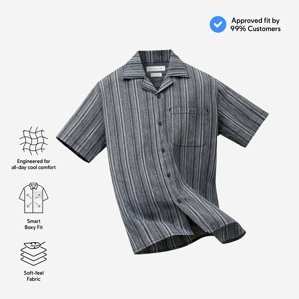 TENUE Kemeja Cotton Camp Collar Lengan Pendek - Black Stripe - Homebody