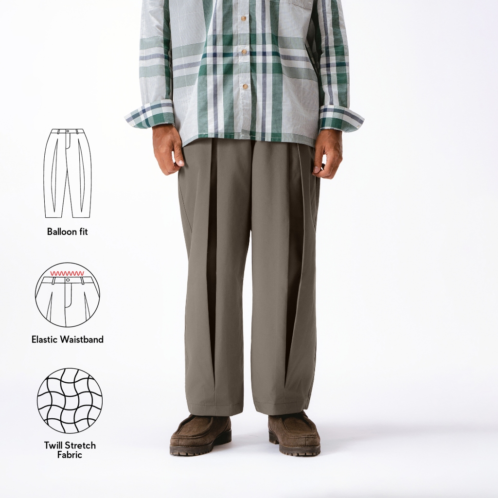 TENUE Celana Balon Pleats Barrel Baggy Panjang Pria - Parisian - Brown