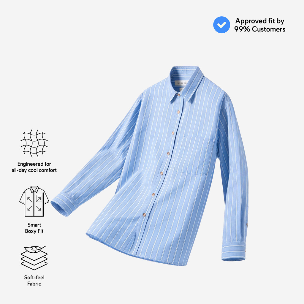 TENUE Kemeja Cotton Lengan Panjang - Blue Thin Stripe - Homebody