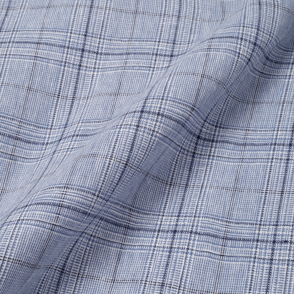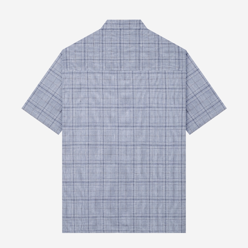 TENUE Kemeja Camp Collar Linen Check Lengan Pendek Blue - By The Hours