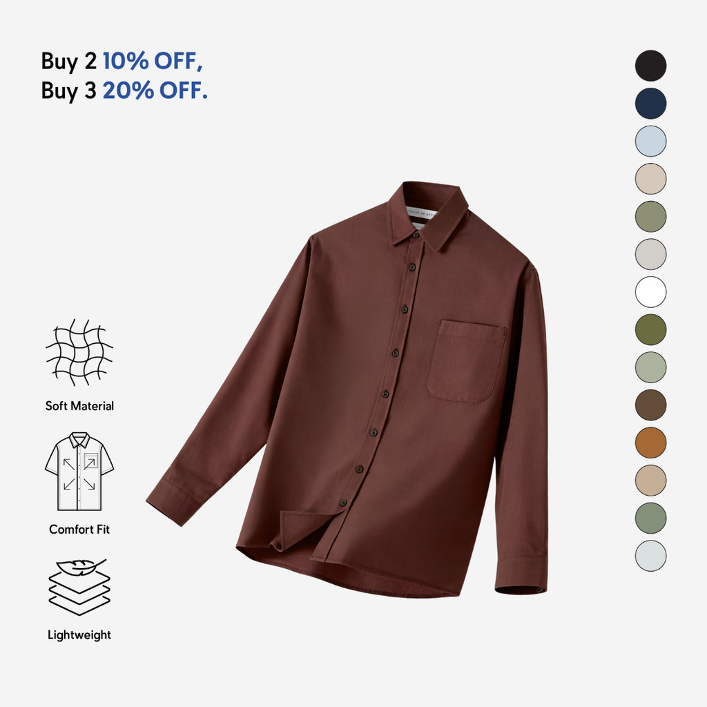 [BUNDLING] TENUE Kemeja Polos Lengan Panjang - CREMA - Maroon