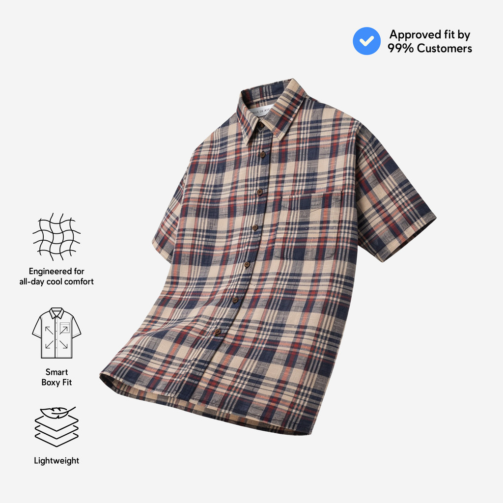 TENUE Kemeja Lengan Pendek - Daydream - Navy Red