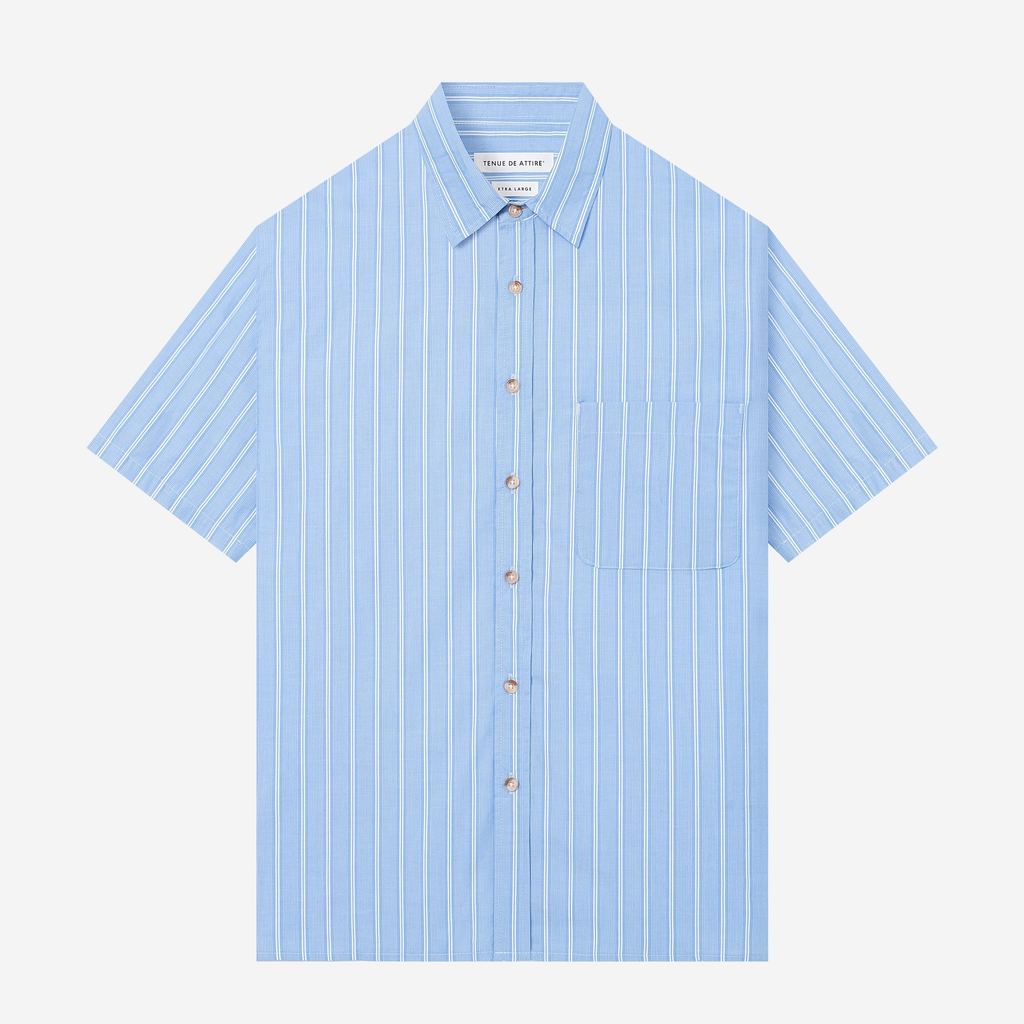 TENUE Kemeja Cotton Lengan Pendek - Blue Thin Stripe - Homebody