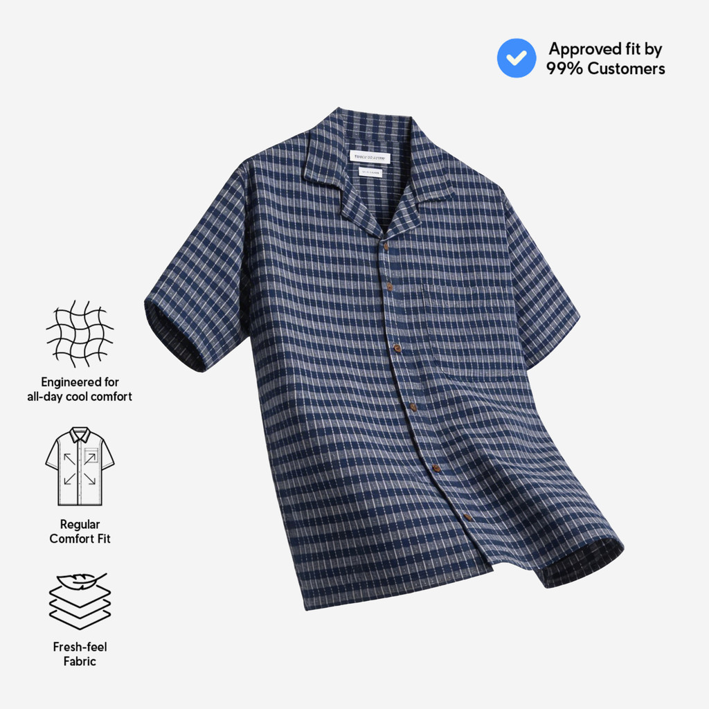 TENUE Kemeja Camp Collar Kotak Kotak Lengan Pendek Midnight Navy - By The Hours
