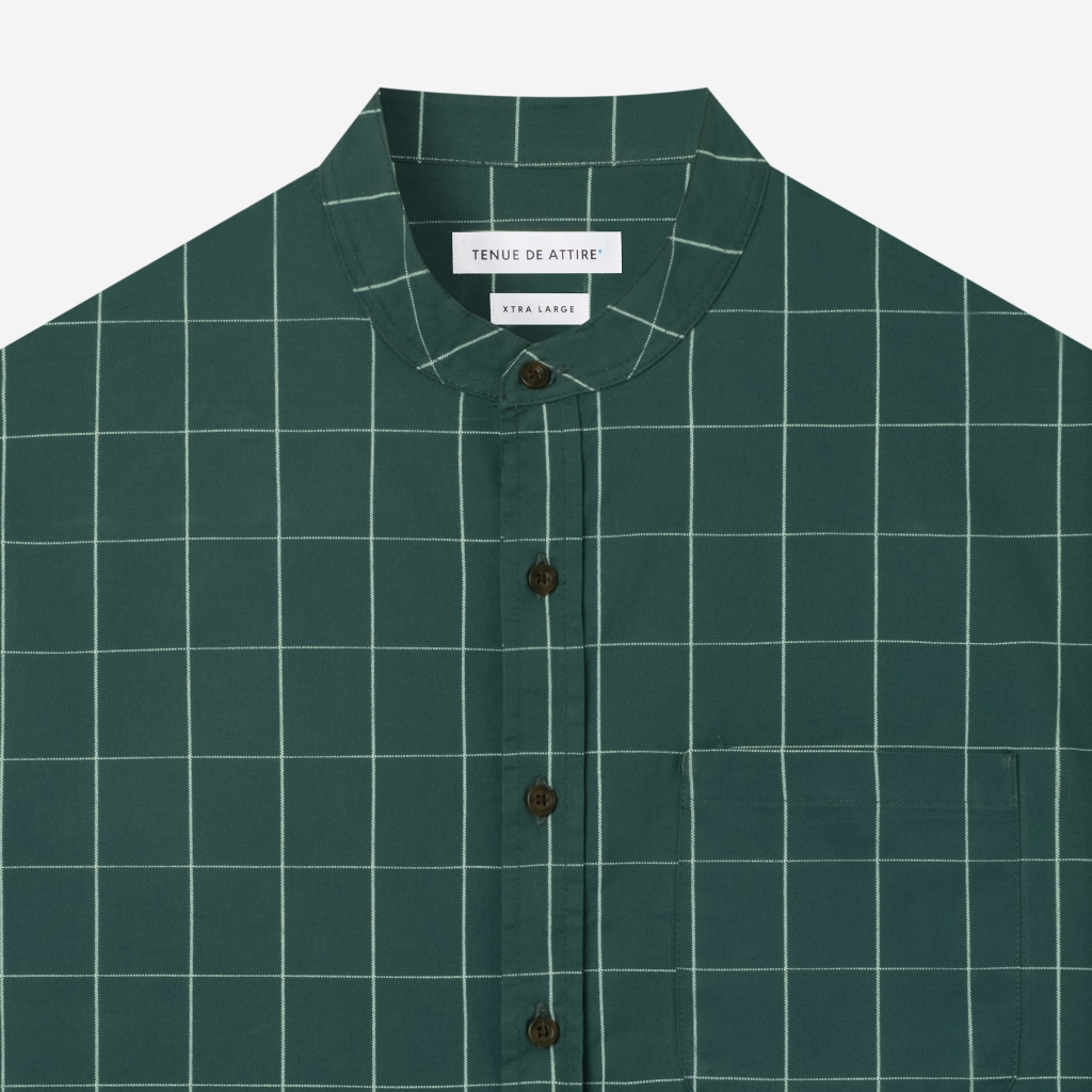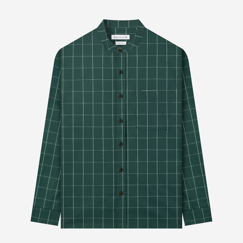 TENUE Baju Koko Pria Lengan Panjang Kotak Kotak Moss Green - By The Hours