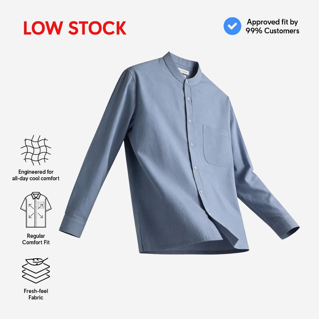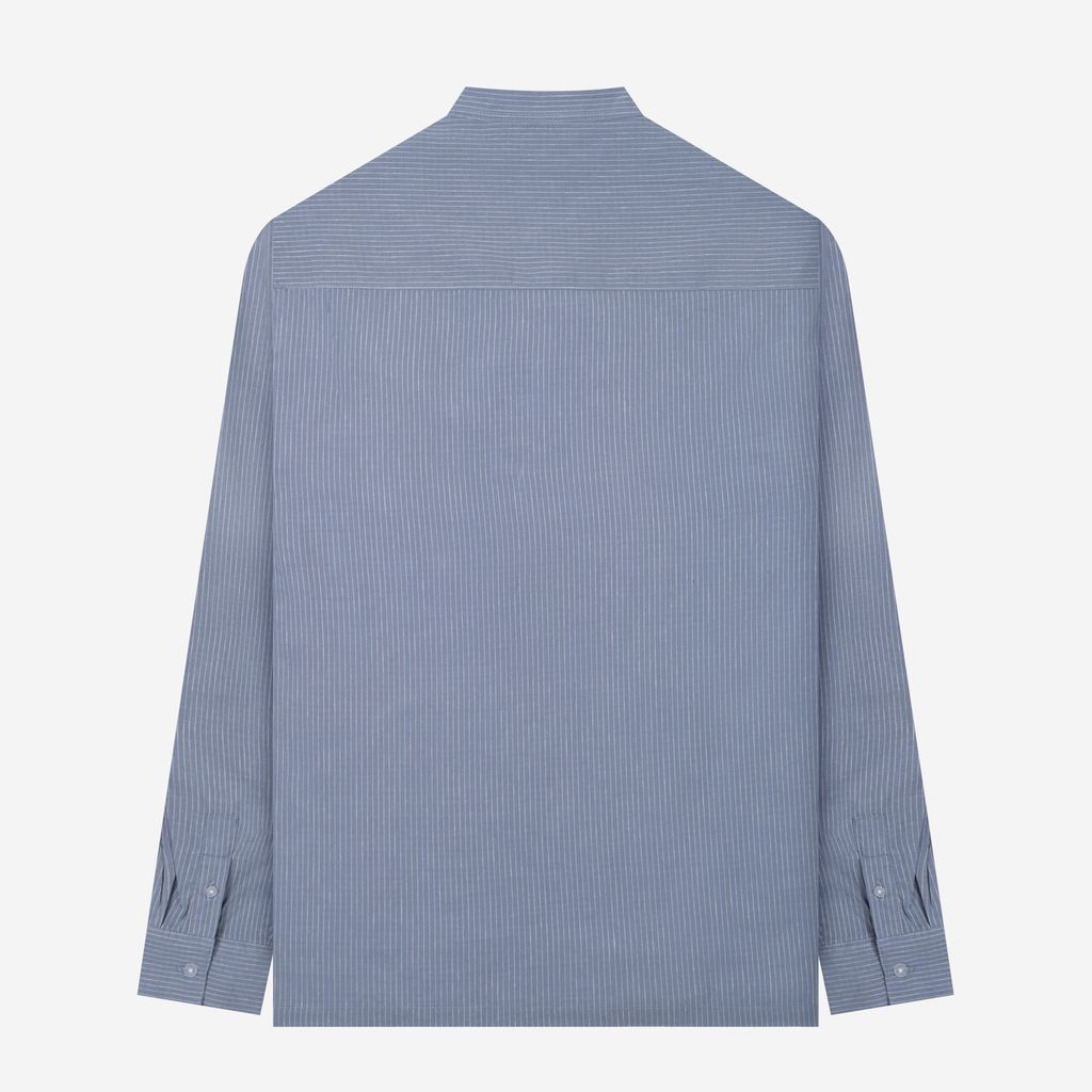 TENUE Baju Koko Pria Lengan Panjang Linen Stripes Light Blue Breeze - By The Hours