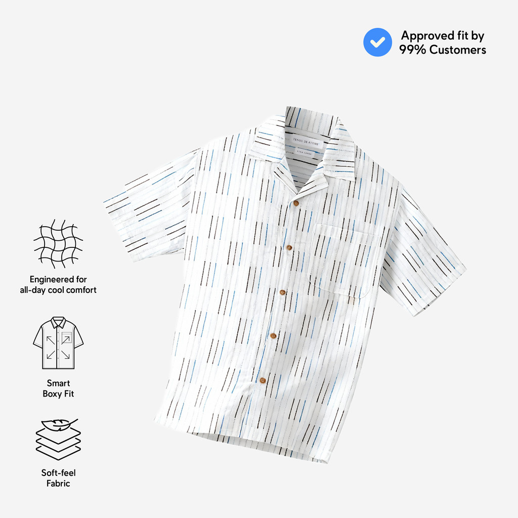 TENUE Kemeja Cotton Camp Collar Lengan Pendek - White Stripe - Homebody