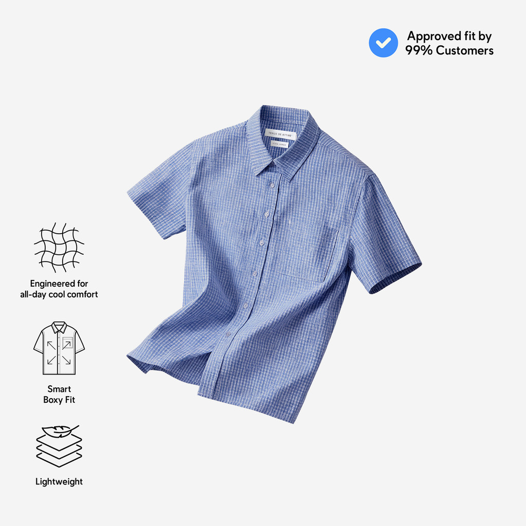 TENUE Kemeja Lengan Pendek - Office Hours - Ocean Plaid