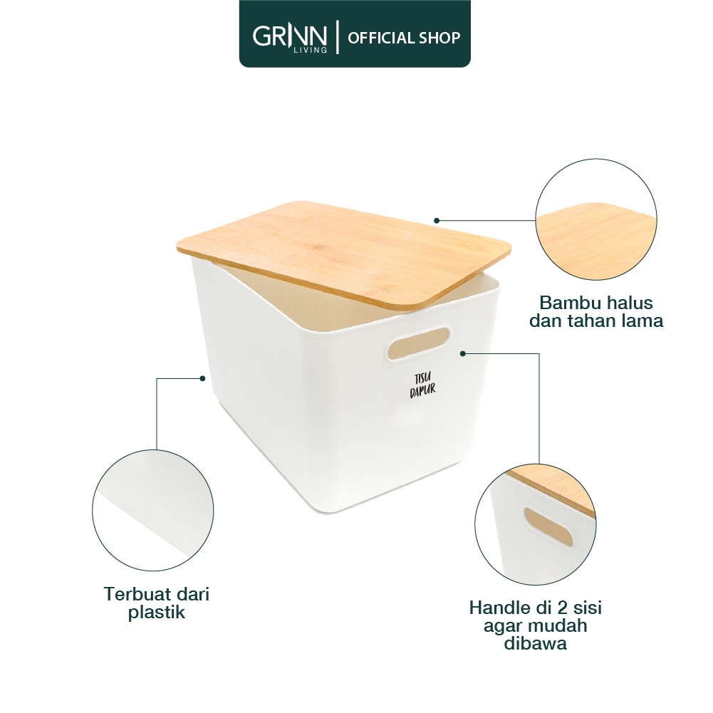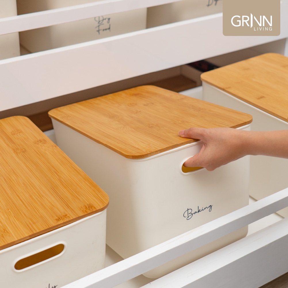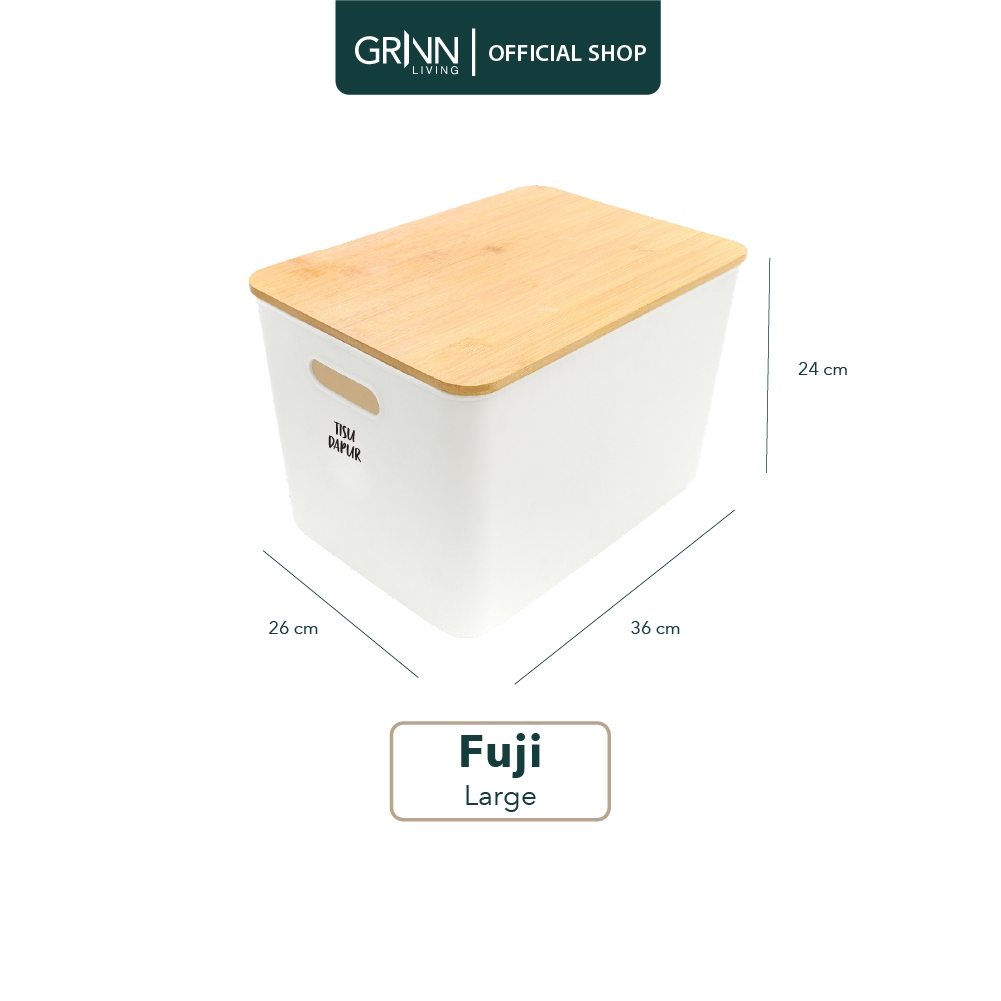 GRINN LIVING Fuji Storage Box / Tempat / Kotak Penyimpanan / Serbaguna Large untuk Makanan / Baju / Mainan Anak Tutup Bambu / Kayu Aesthetic