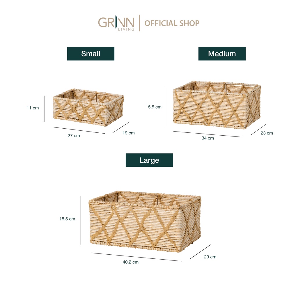 GRINN LIVING Edith Keranjang Kulit Jagung Bohemian Ukuran Small / Kotak Penyimpanan / Box Organizer / Keranjang Serbaguna Aesthetic