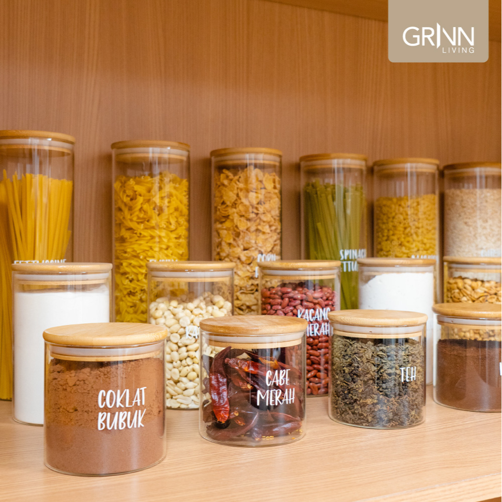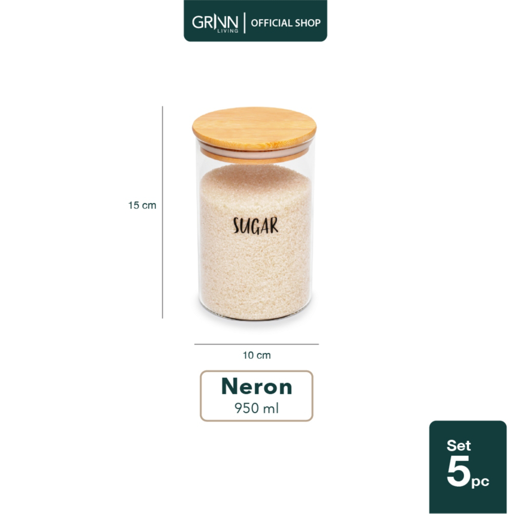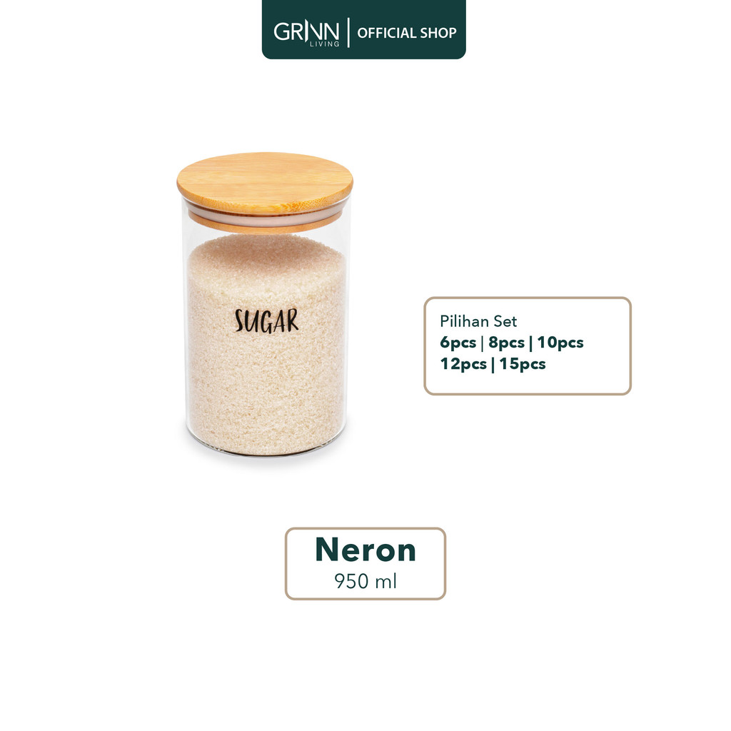 GRINN LIVING SET PAKET Neron jar 950 ml/Toples Kaca Tutup Kayu /Tempat Penyimpanan Gula Snack Sereal