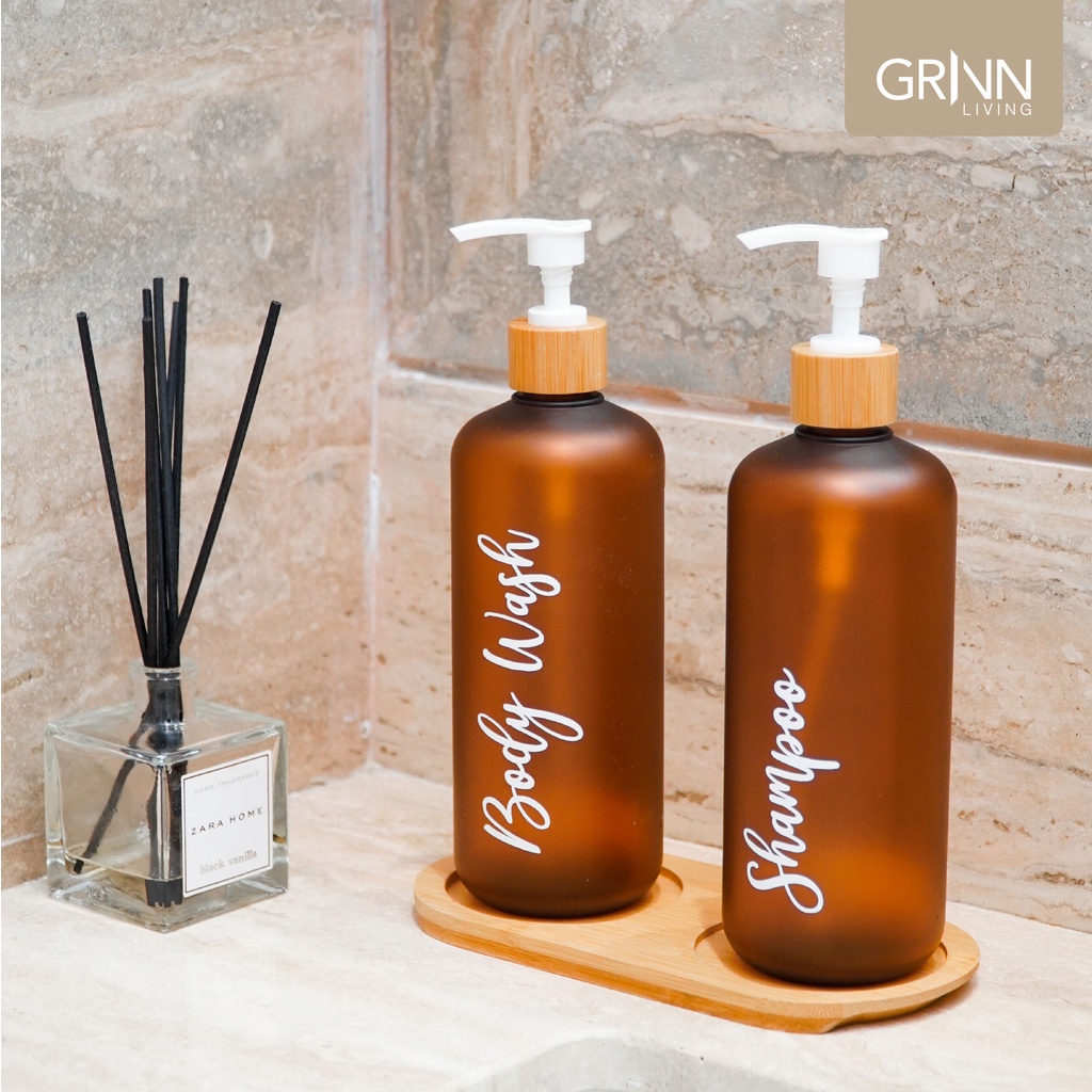 GRINN LIVING Greta Tray / Nampan / Tatakan Bambu untuk Tempat Botol Sabun / Shampoo / Hand Sanitizer / Lotion Aesthetic