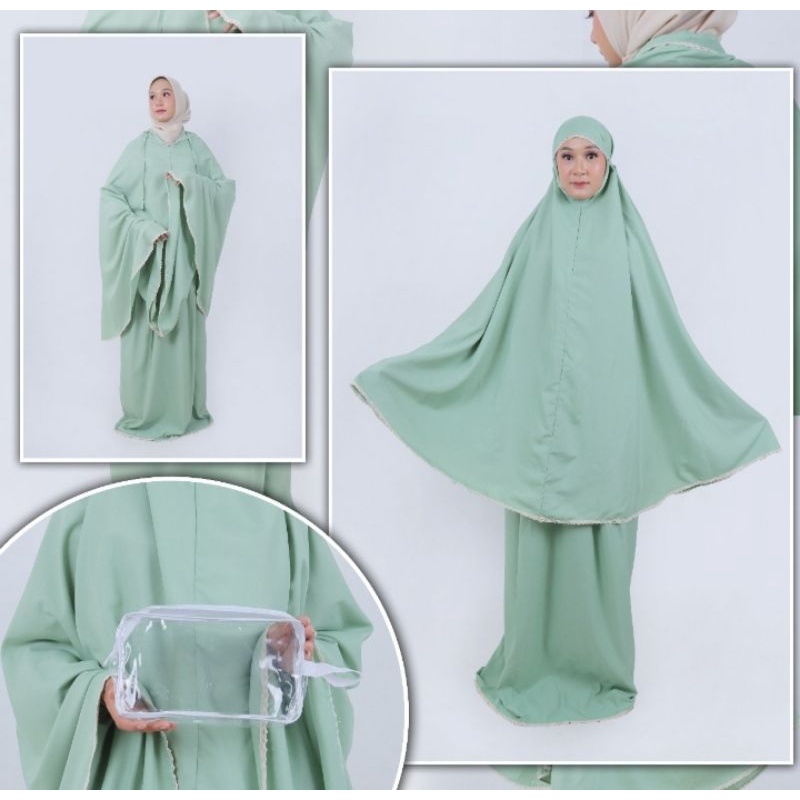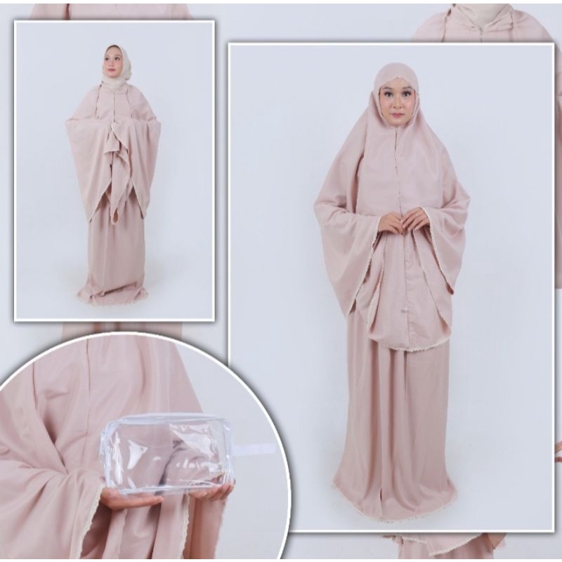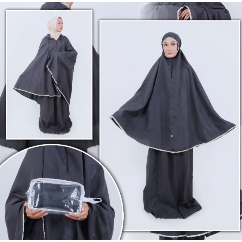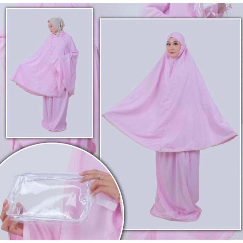 ZAIN Mukena Traveling Dewasa 2in1 Polos Katun Premium SHAFI Series Ponco Resleting Dagu Jumbo