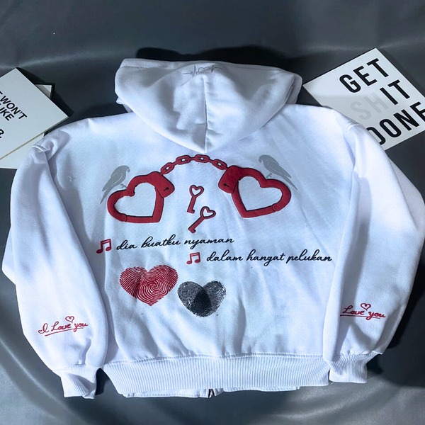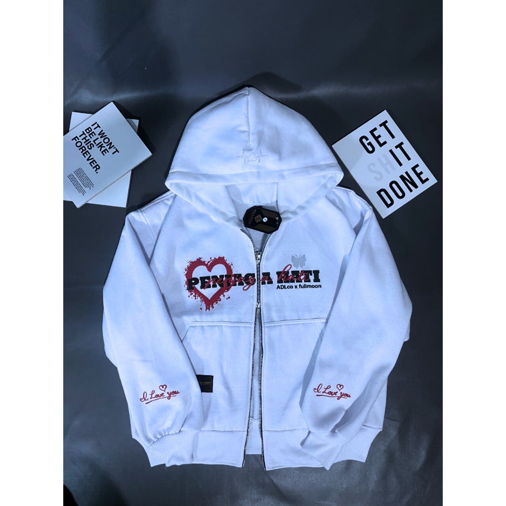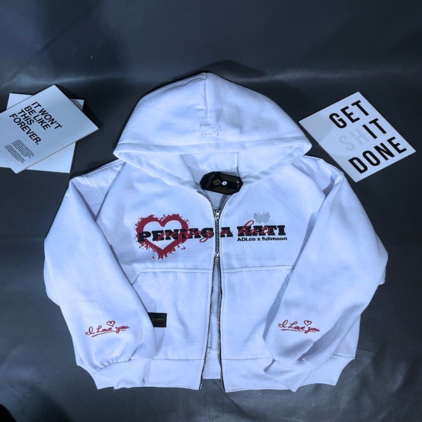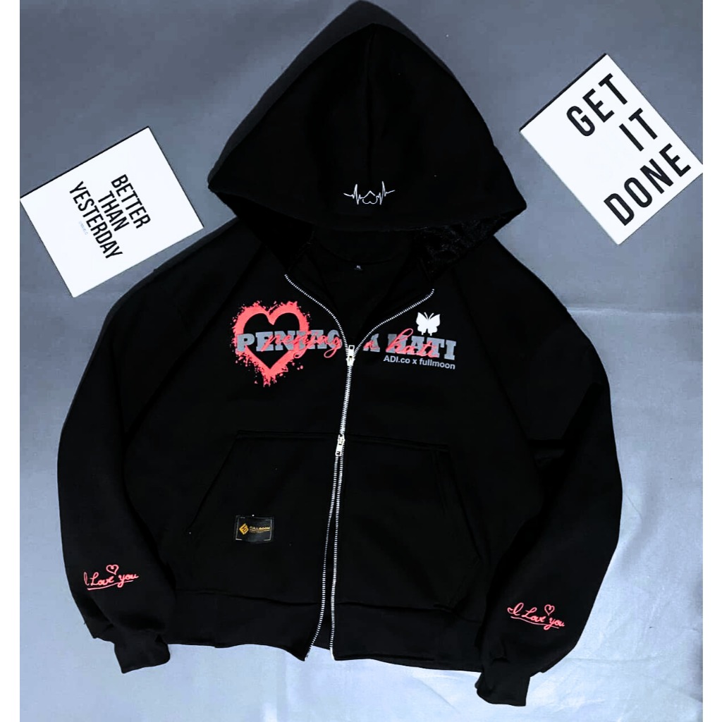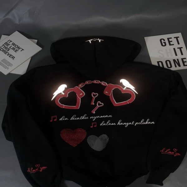 BUNAMA - HOODIE BOXY DOUBLE ZIPPER PENJAGA HATI SABLON FOAM REFLECTIVE MENYALA FLECEE TEBAL 280-300