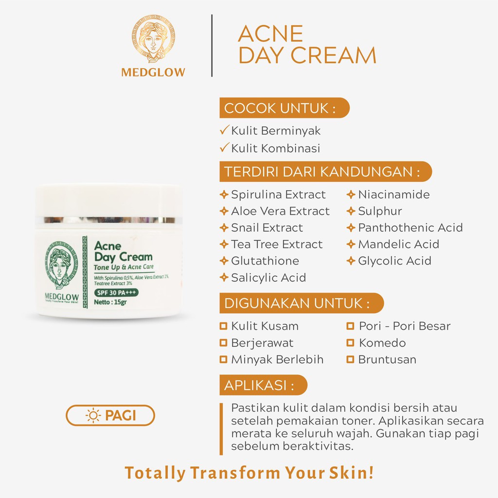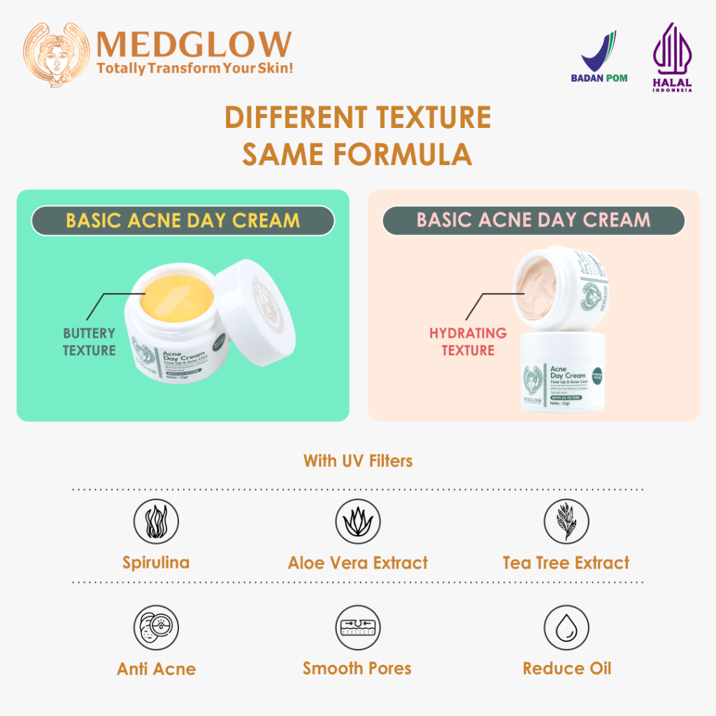 MEDGLOW CLINIC Basic Acne Day Cream SPF 30 | Skincare Krim Pagi Anti Jerawat Komedo Berminyak Dokter BPOM HALAL pelembab sunscreen sunblock tinted moisturizer beruntusan pelicin salep obat totol berjerawat racikan farmasi apotek klinik estetika