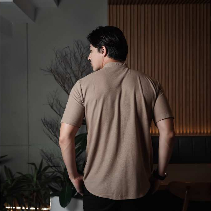 STYLELAKI - Kemeja Lapique Casual Pria Lengan Pendek Slim Fit | Anti Kusut, Adem & Nyaman - Mocca