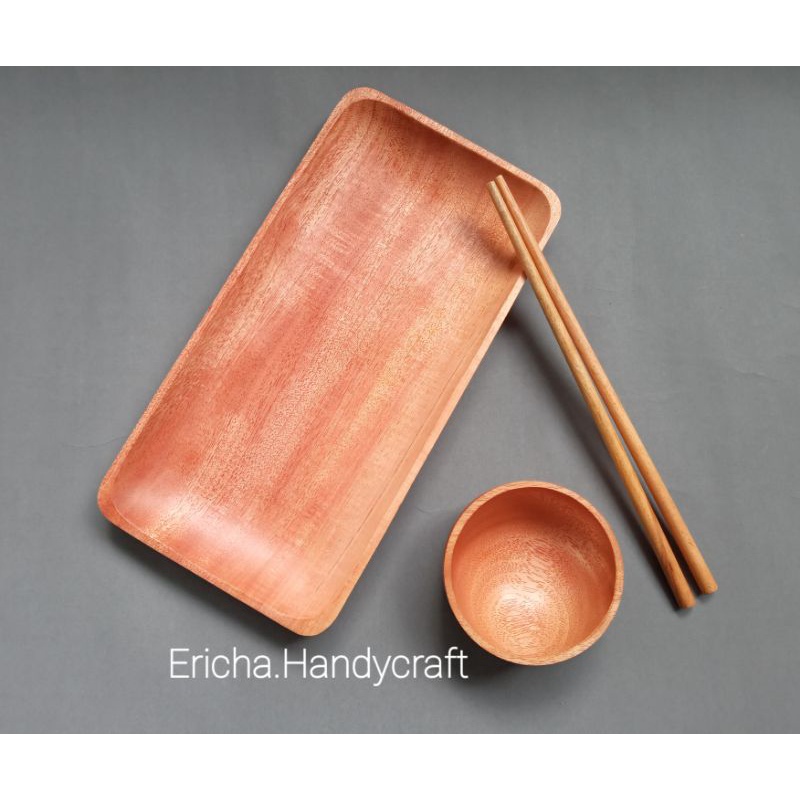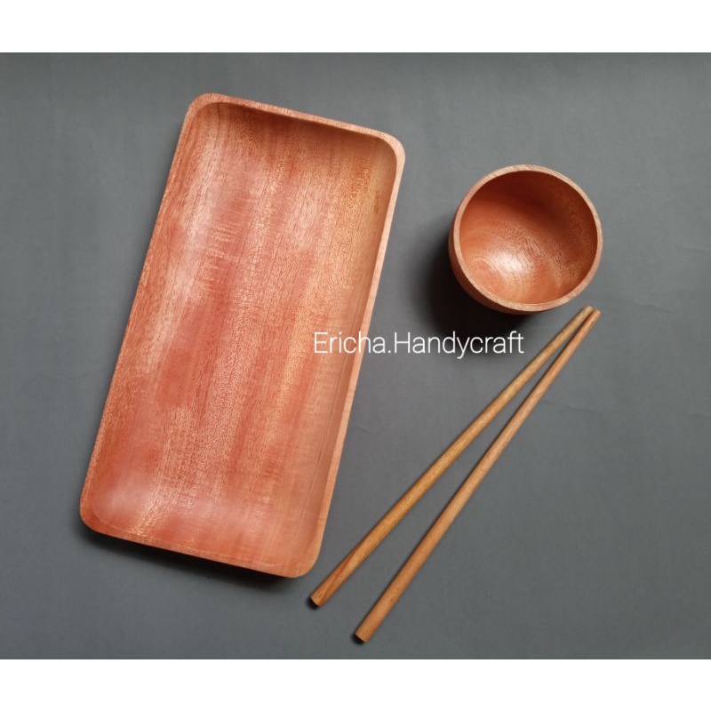 Piring kayu/piring saji/piring sushi paket kayu mahoni kotak 14×28cm/set piring sushi kayu mahoni