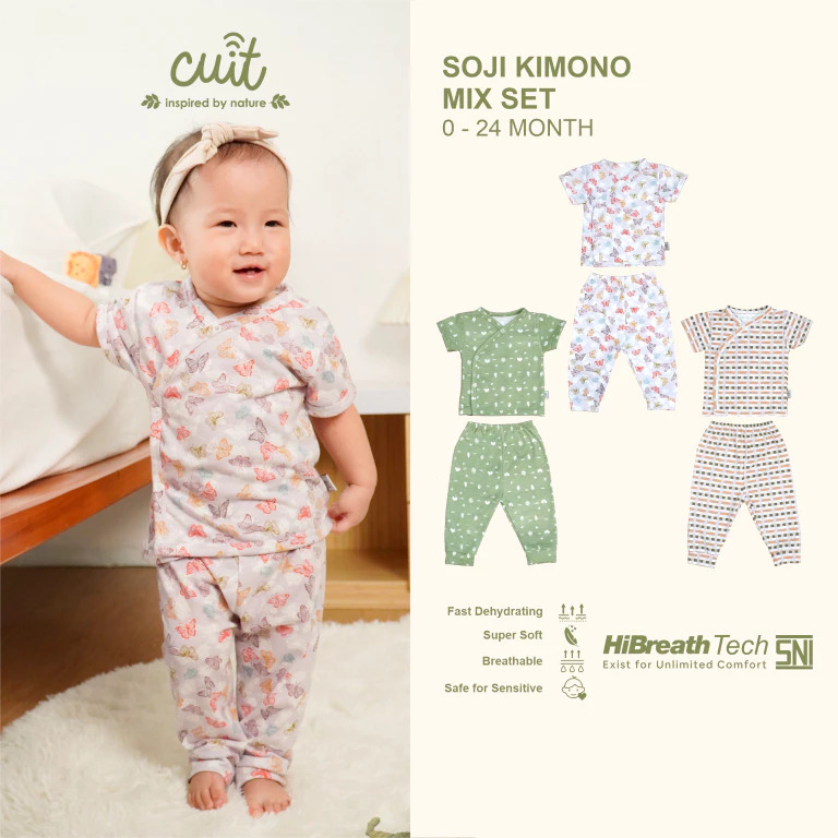 Cuit Soji Kimono Set Bayi Snap Button Mix Tangan Pendek Celana Panjang Anak / Setelan Baju Anak