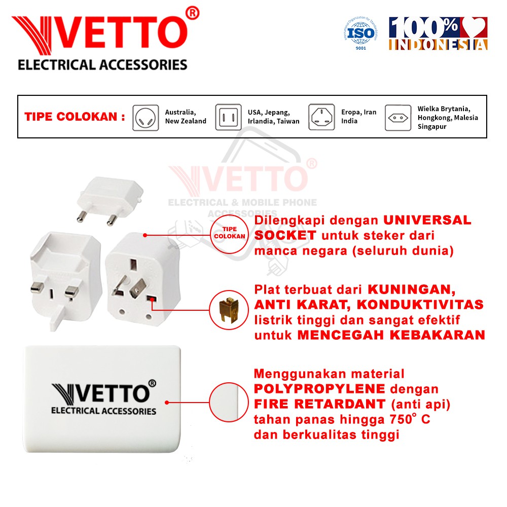 VETTO V8993 Universal Travel Adaptor Putih "Best Seller"