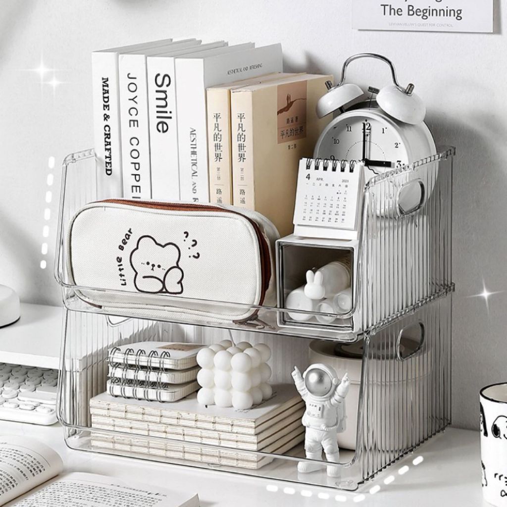 99KHOME Rak Meja Kotak Penyimpanan Buku Tempat Makeup Storage Serbaguna Plastik Transparan H942