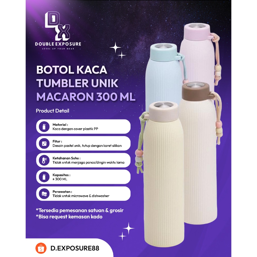 BOTOL KACA TUMBLER MACARON 300 ML TUMBLER SOUVENIR HAMPERS BISA BRANDING BOTOL UNIK WARNA