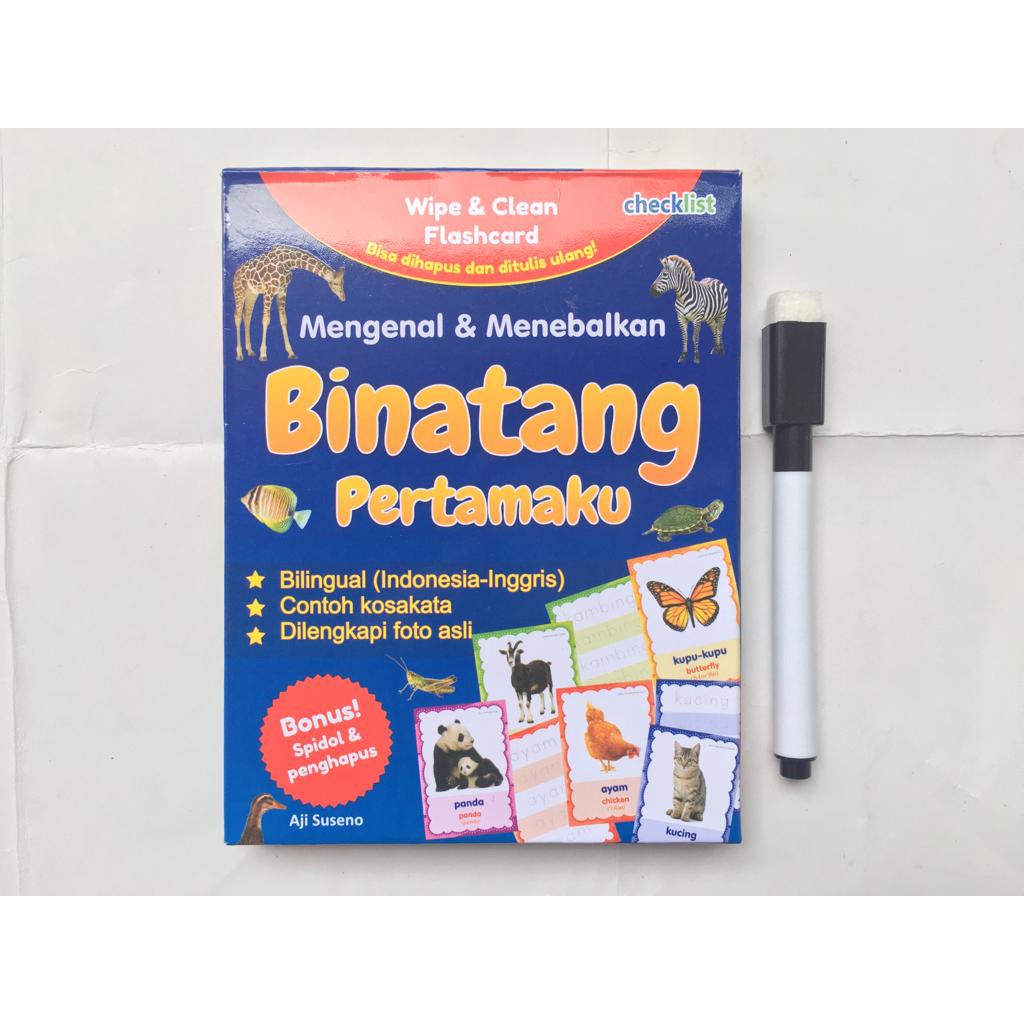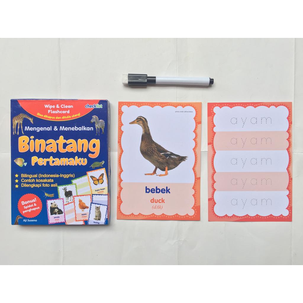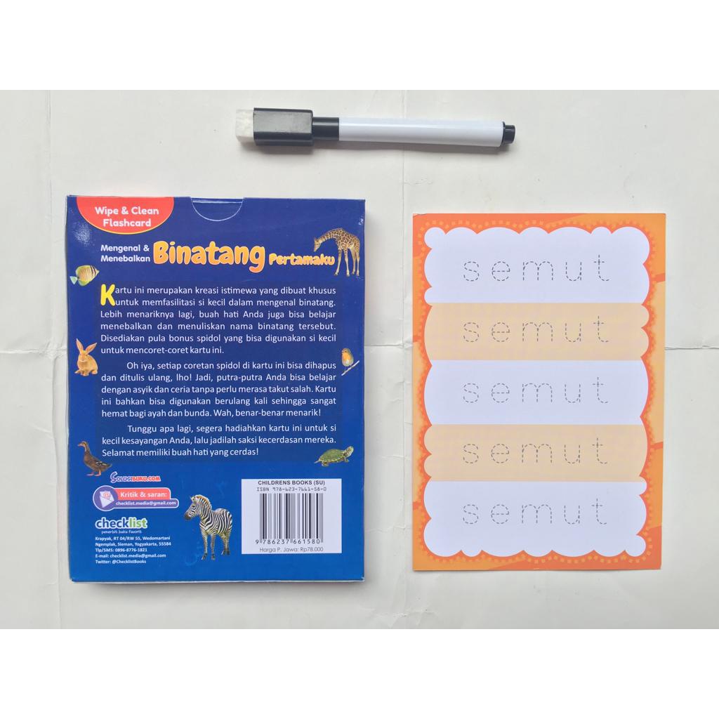 Kartu Wipe & Clean Flashcard Mengenal & Menebalkan Binatang Bonus Spidol Mini