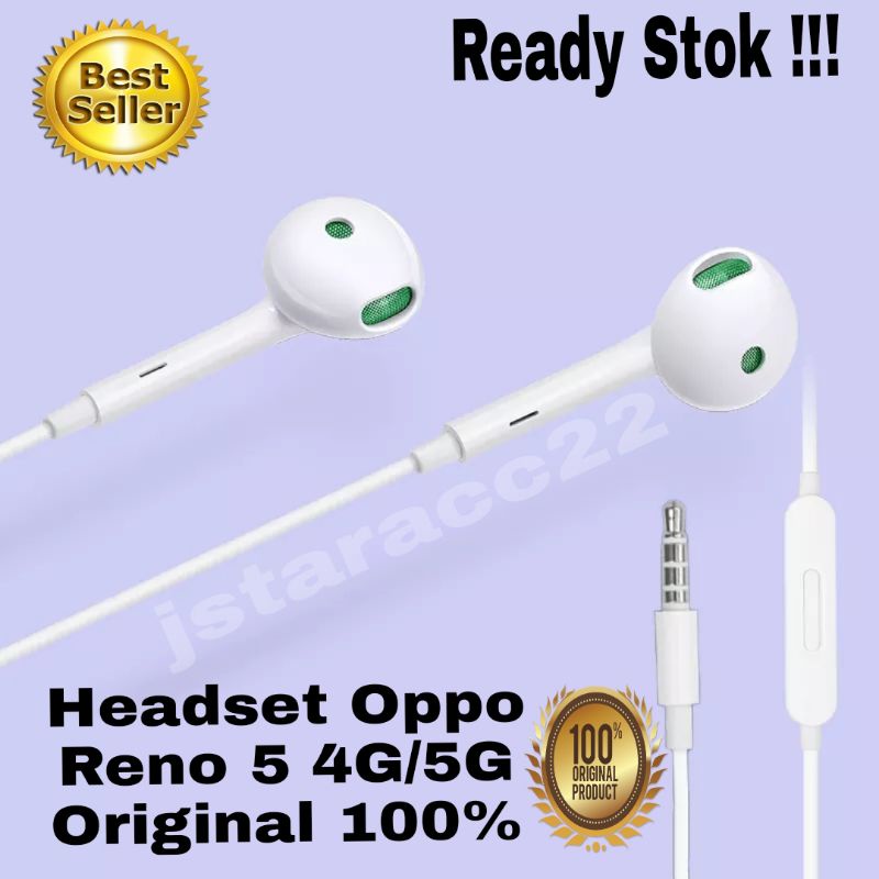 HEADSET OPPO RENO 5 5F ORIGINAL 100% WITH MIC STEREO BASS HANDSFREE JACK 3.5MM EARPHONE ORI