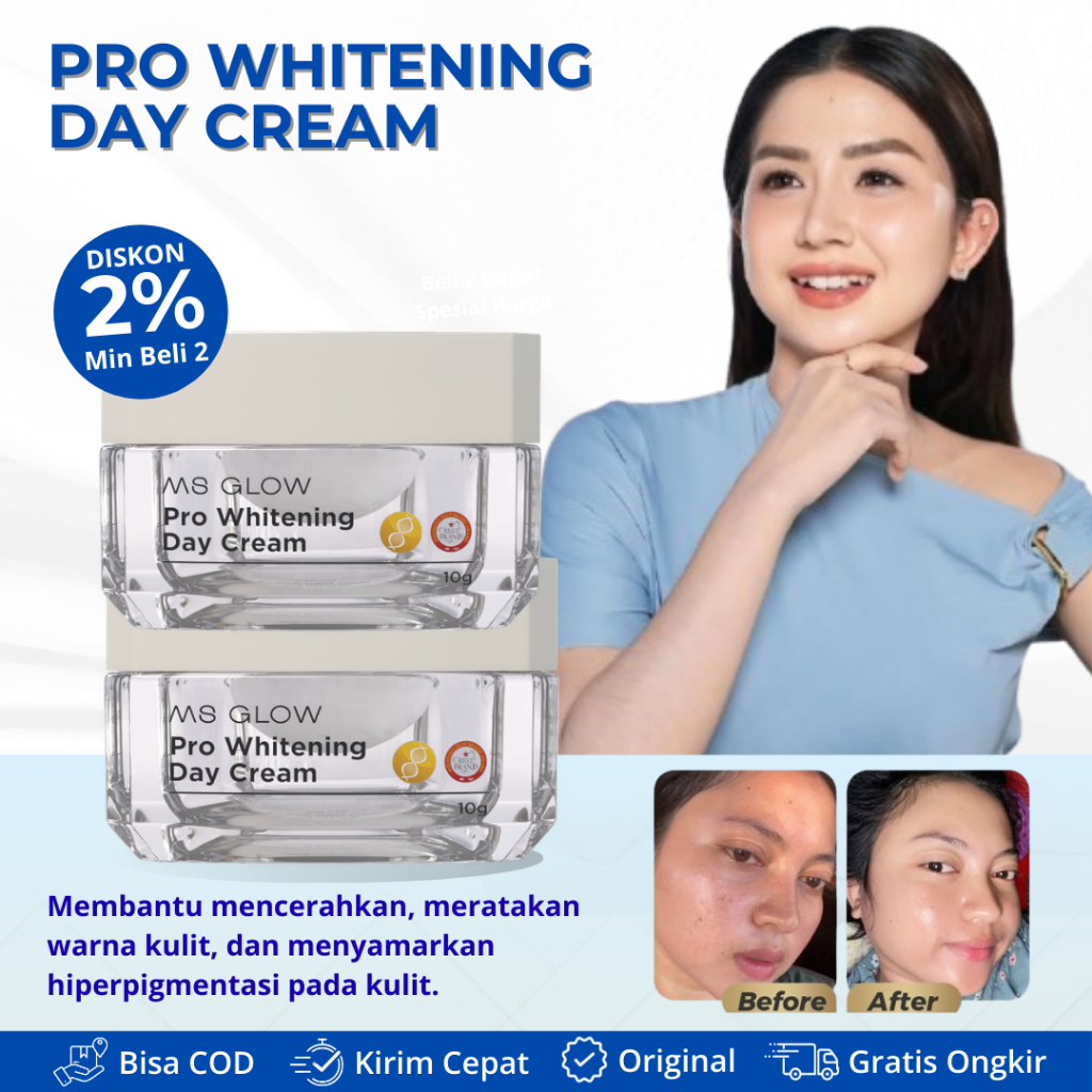 MS Glow Pro Whitening Day Cream - 12 GR Krim Siang Pelindung Kulit dari Sinar UV COD