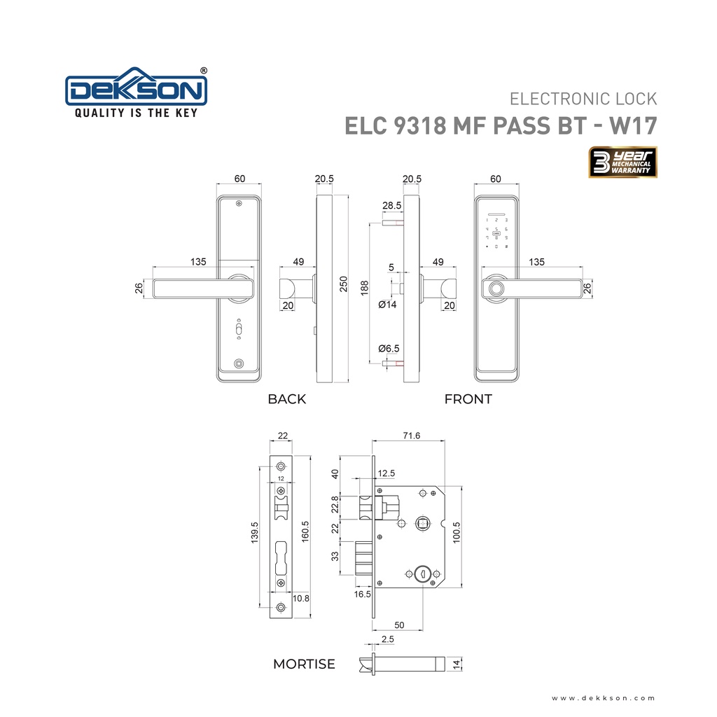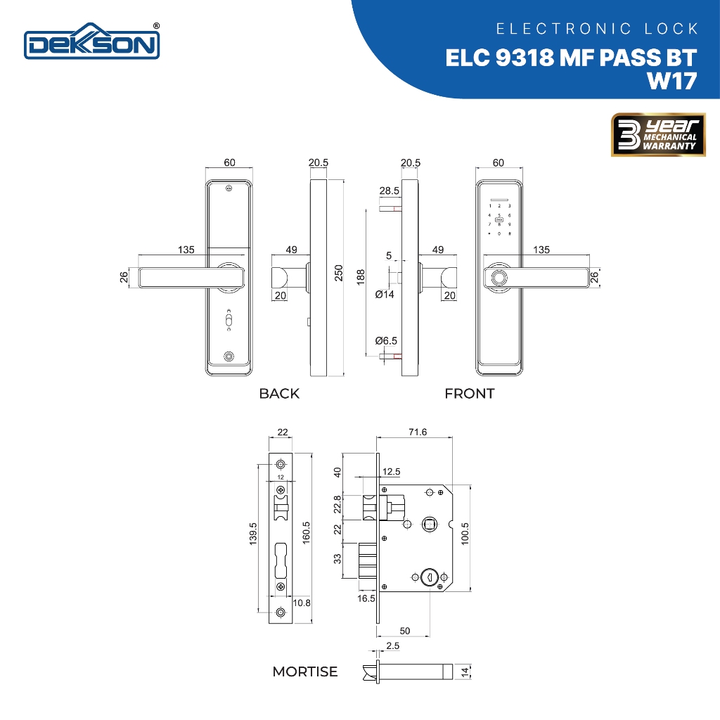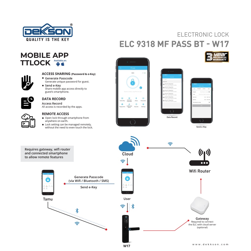DEKKSON Electronic Lock Kunci Digital ELC 9318 MF PASS BT W17 TTLOCK
