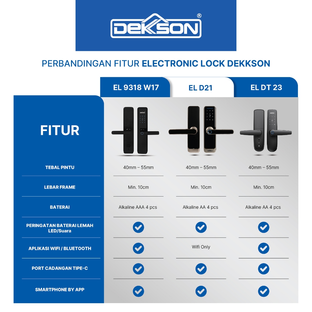 DEKKSON Electronic Lock Kunci Digital ELC 9318 MF PASS BT W17 Tuya