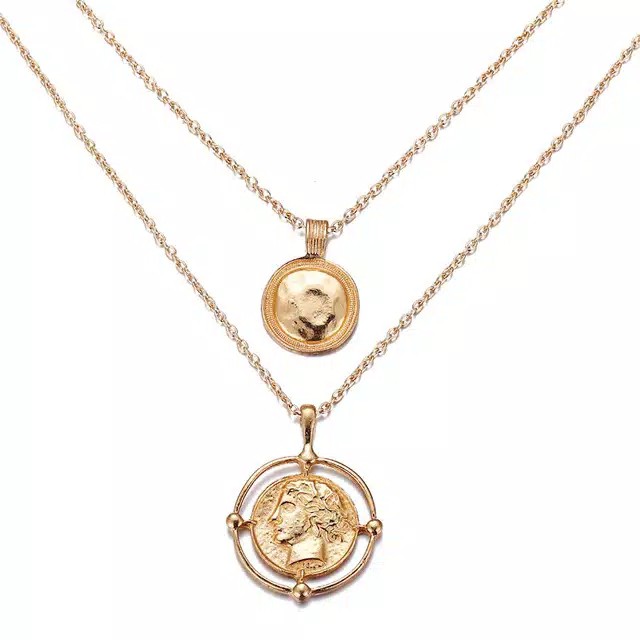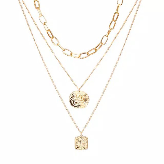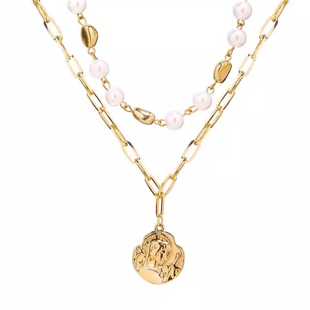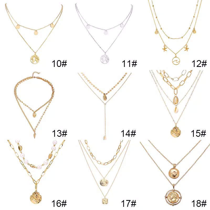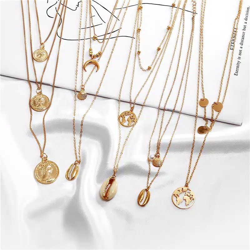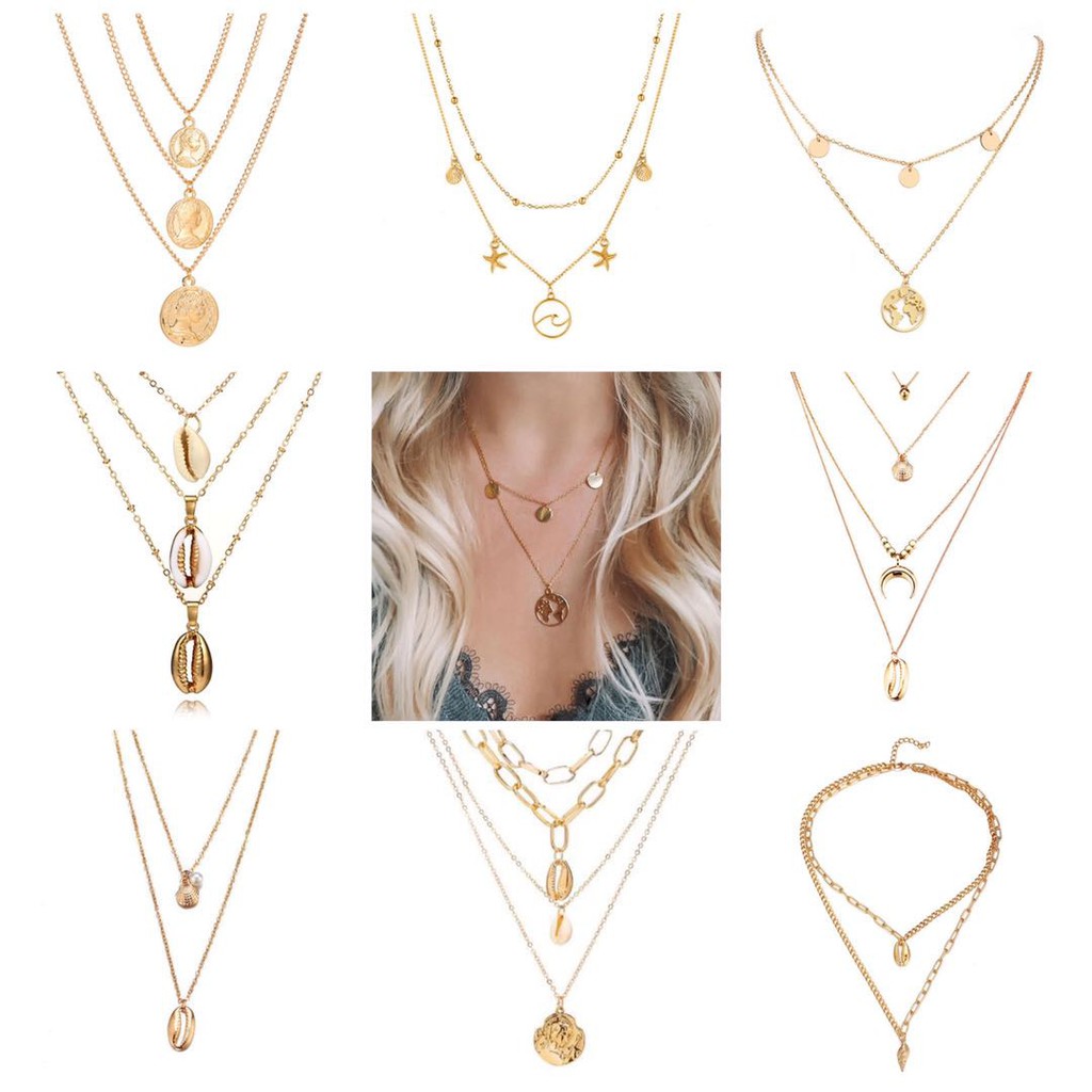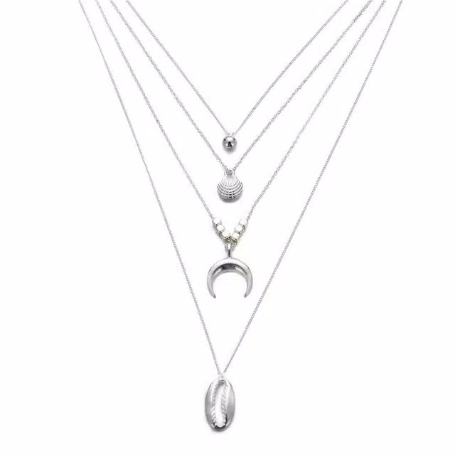 Kalung Rantai Multi Layer Liontin Kerang / Tanduk Kerang Bahan Alloy untuk Wanita / Mode Retro Emas