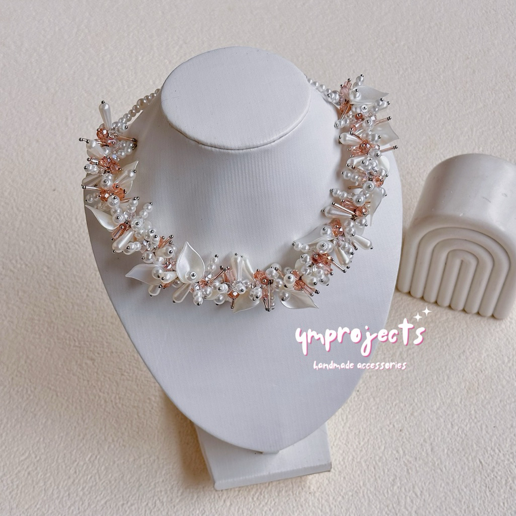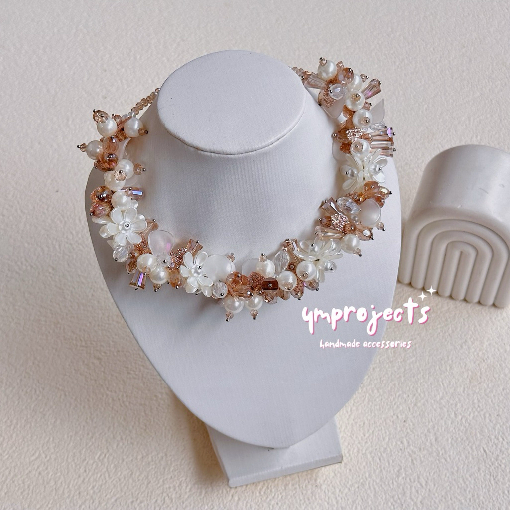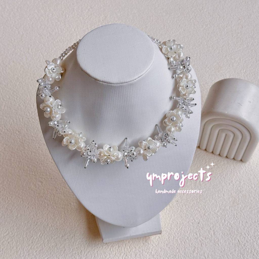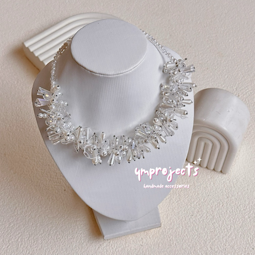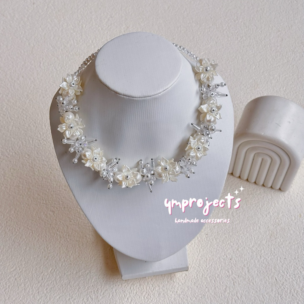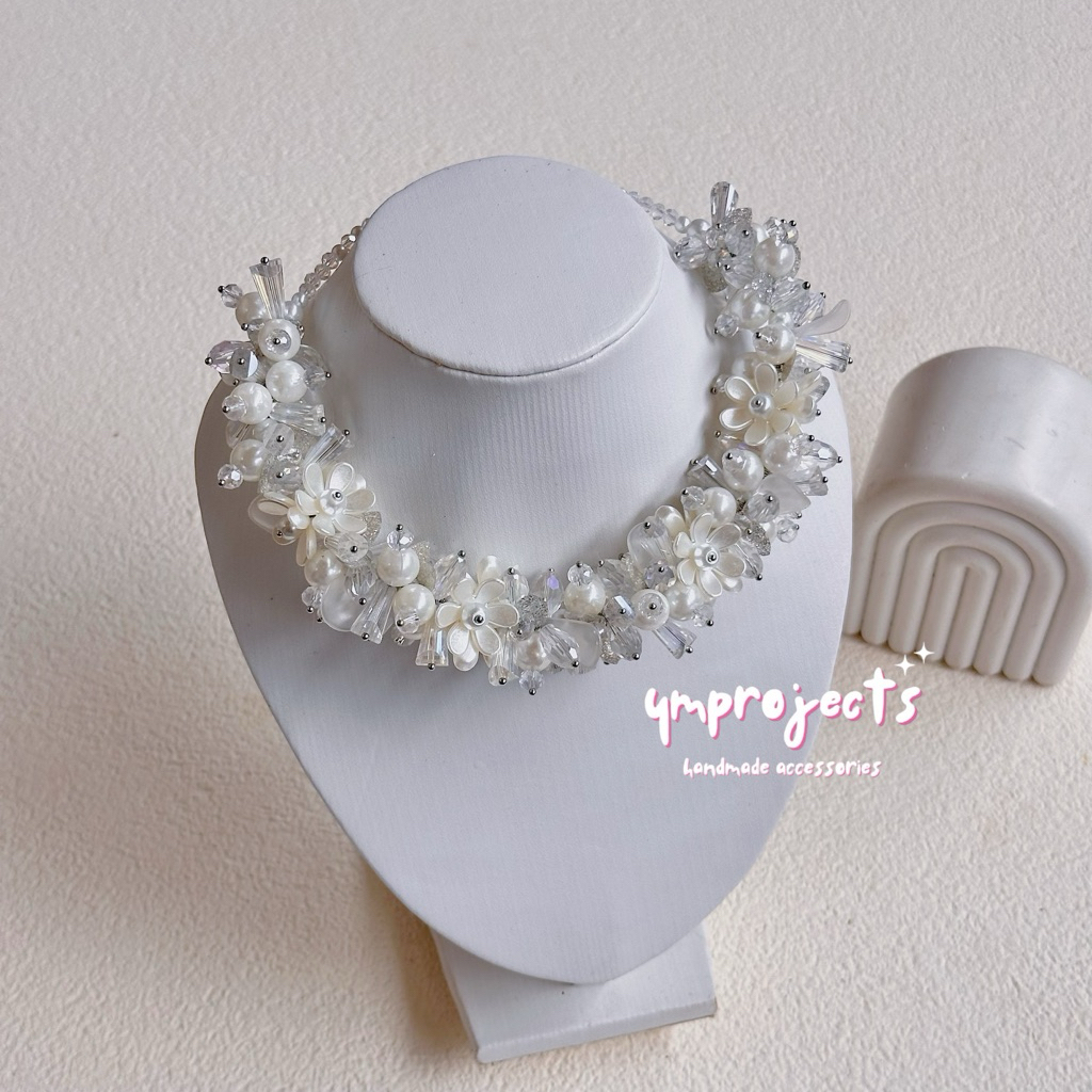 YM READY STOCK PREMIUM CRYSTAL BEADS NECKLACE - KALUNG HIJAB DAILY FASHION HANDMADE BY YMPROJECTS • CHOKER MANIK KRISTAL BUNGA MUTIARA PEMANIS BAJU POLOS KONDANGAN DAN LEBARAN | KALUNG PANJANG HIJAB NONHIJAB UNTUK KEBAYA BRIDESMAID
