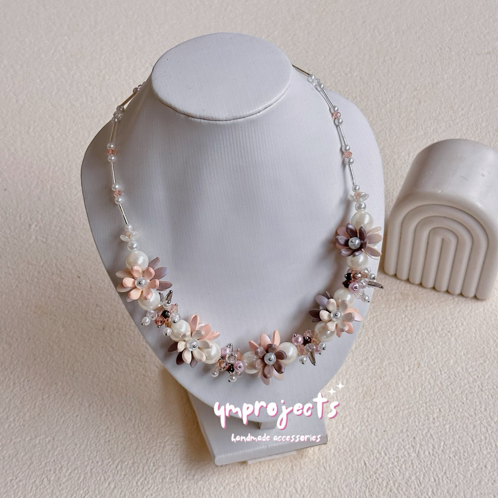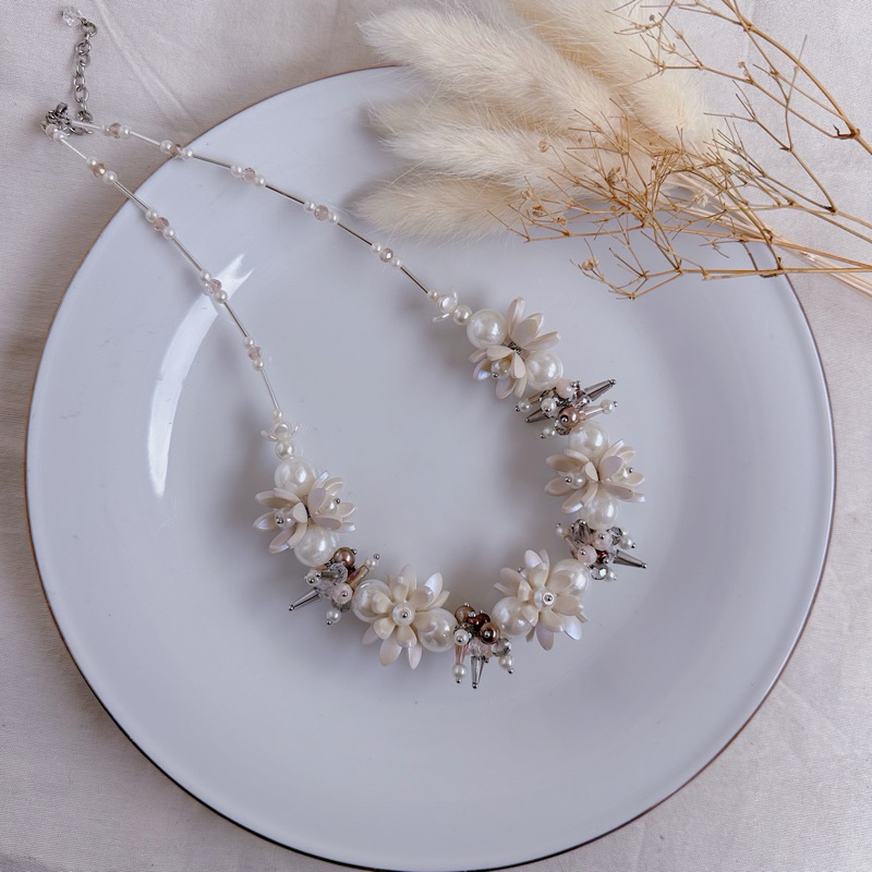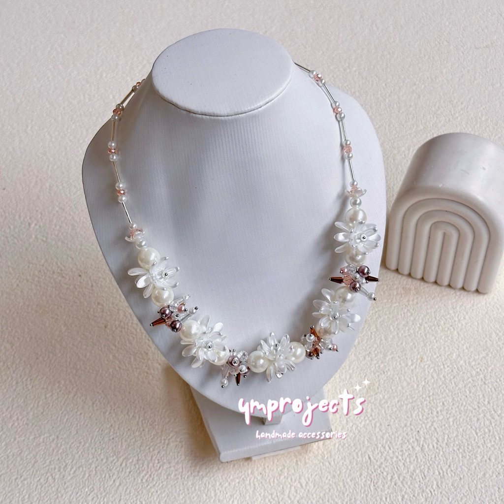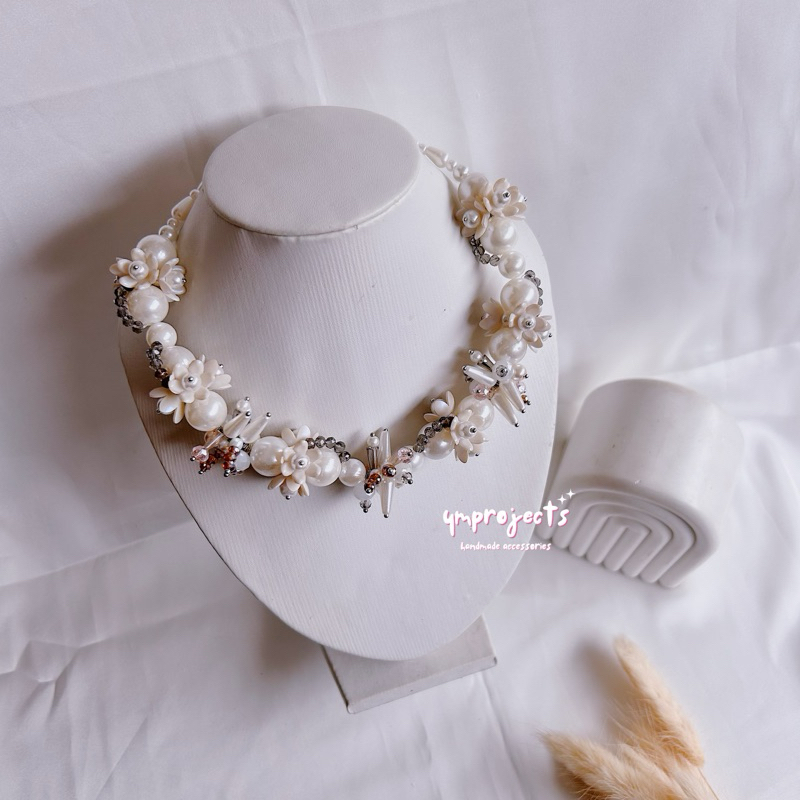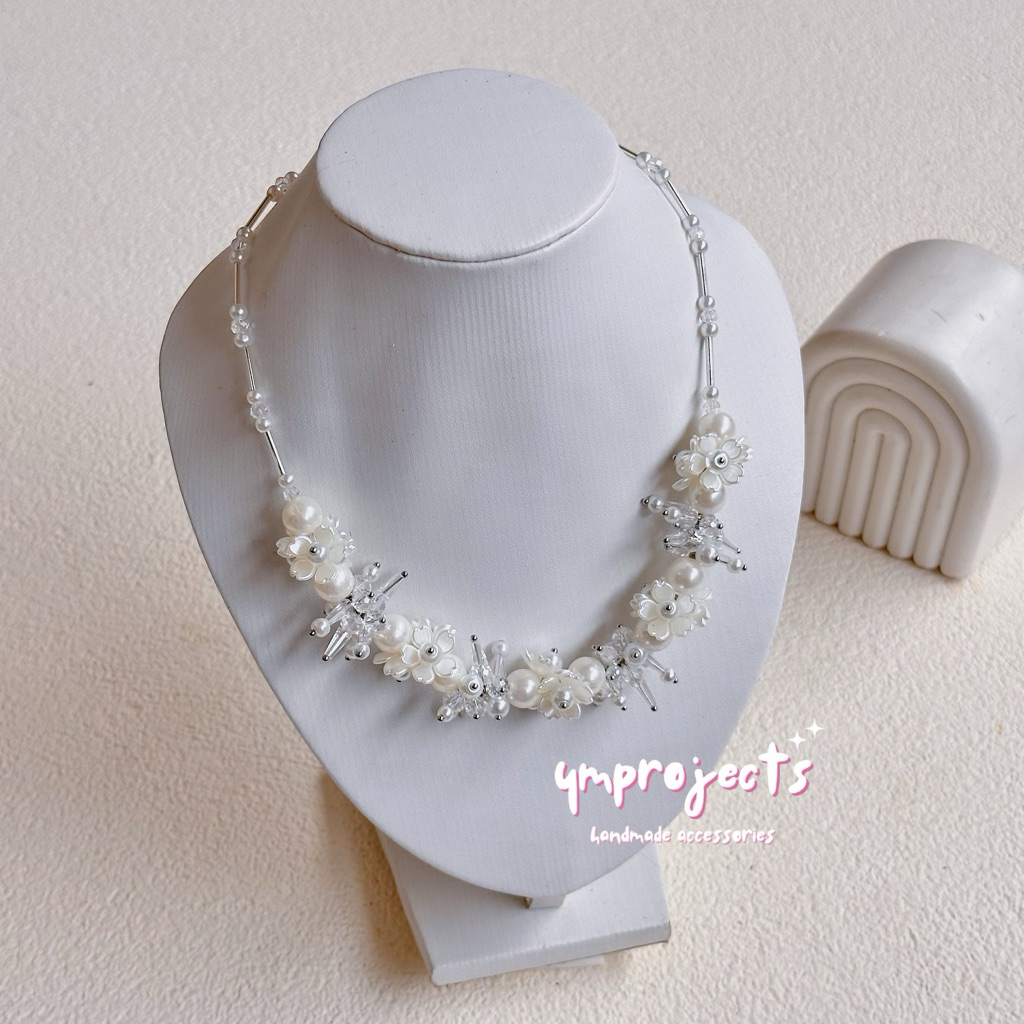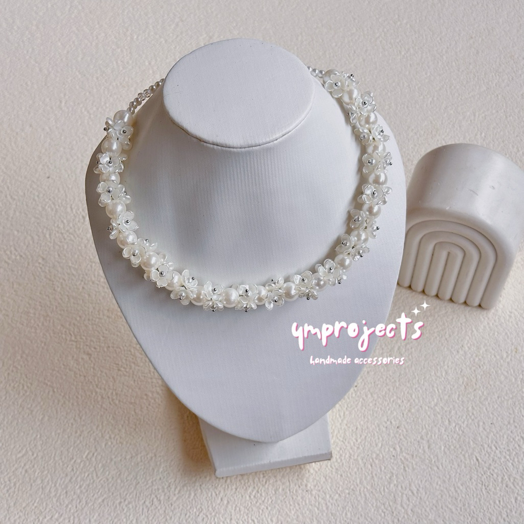 YM READY STOCK PREMIUM CRYSTAL BEADS NECKLACE - KALUNG HIJAB DAILY FASHION HANDMADE BY YMPROJECTS • CHOKER MANIK KRISTAL BUNGA MUTIARA PEMANIS BAJU POLOS KONDANGAN DAN LEBARAN | KALUNG PANJANG HIJAB NONHIJAB UNTUK KEBAYA BRIDESMAID