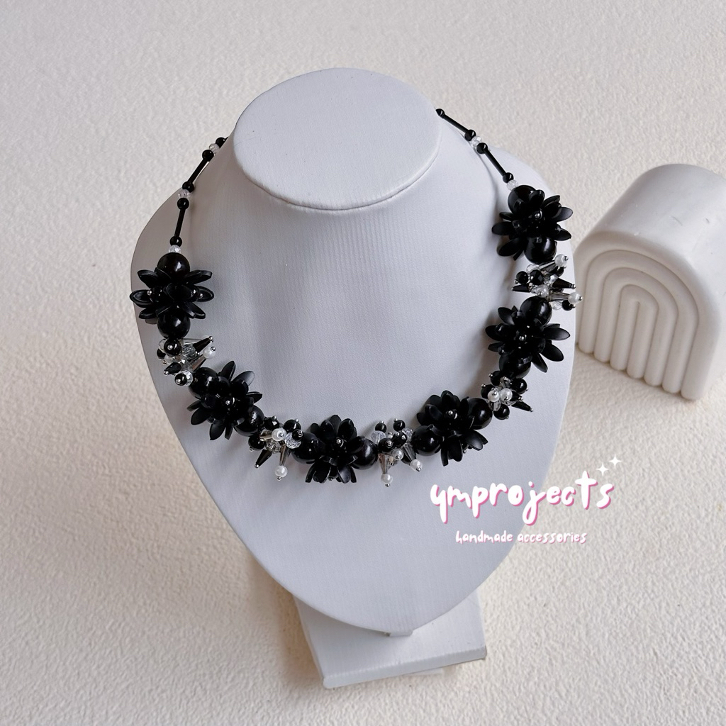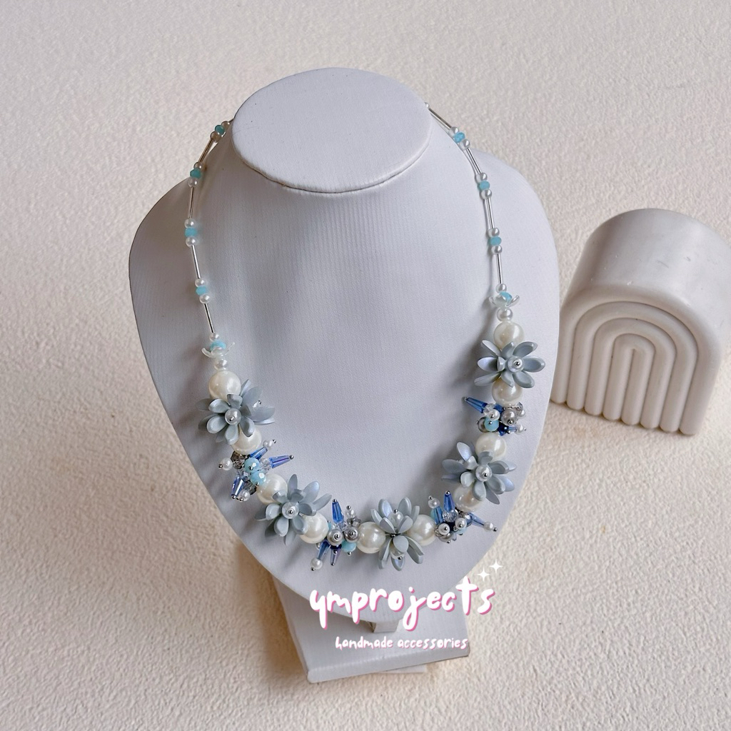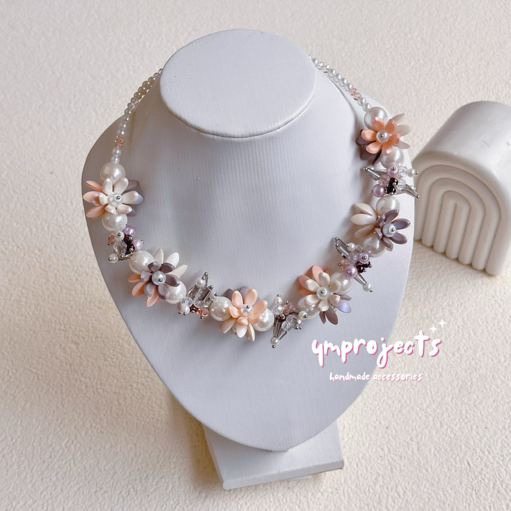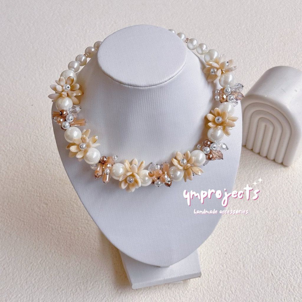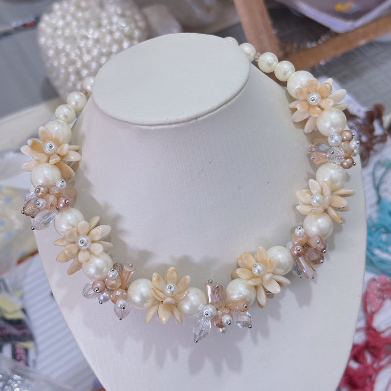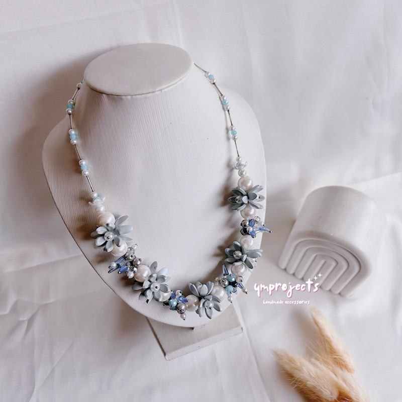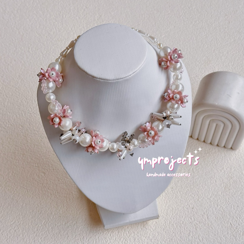 YM READY STOCK PREMIUM CRYSTAL BEADS NECKLACE - KALUNG HIJAB DAILY FASHION HANDMADE BY YMPROJECTS • CHOKER MANIK KRISTAL BUNGA MUTIARA PEMANIS BAJU POLOS KONDANGAN DAN LEBARAN | KALUNG PANJANG HIJAB NONHIJAB UNTUK KEBAYA BRIDESMAID