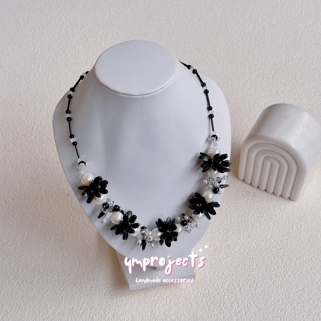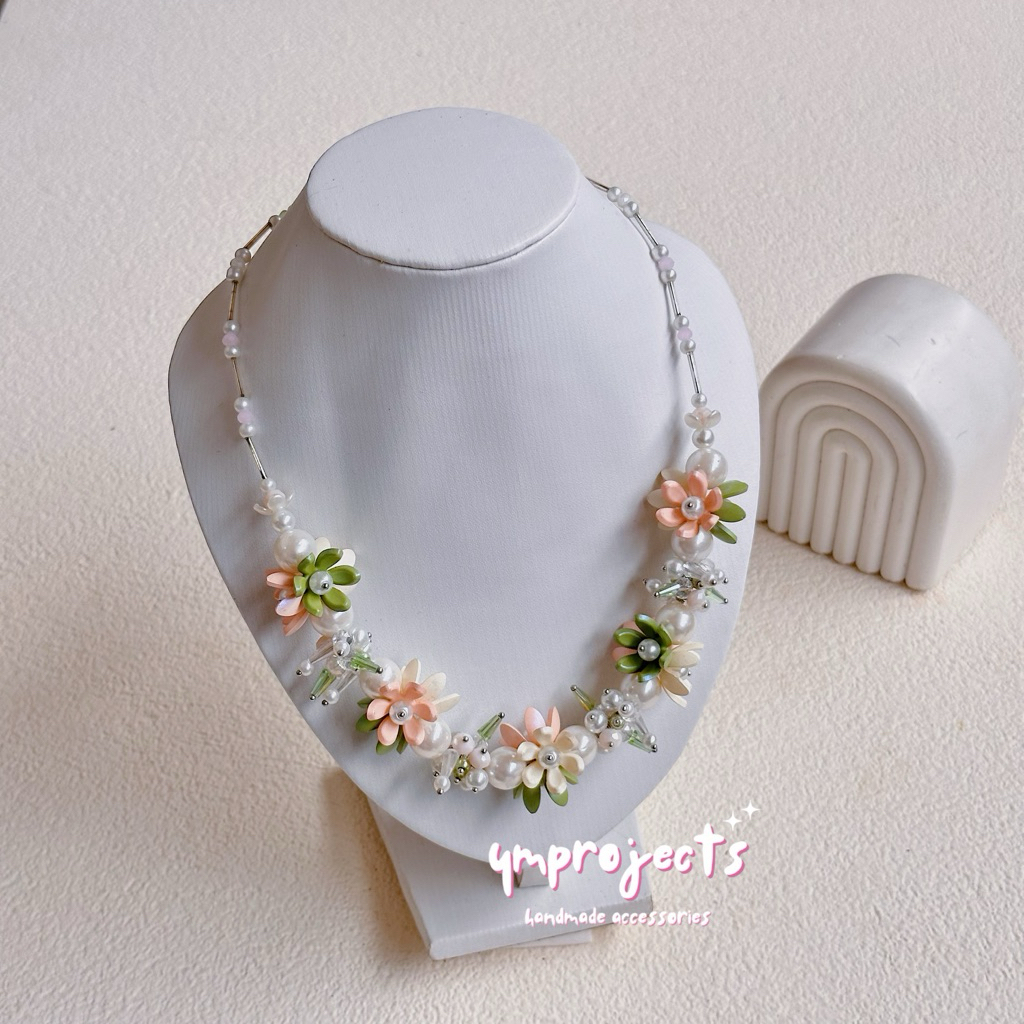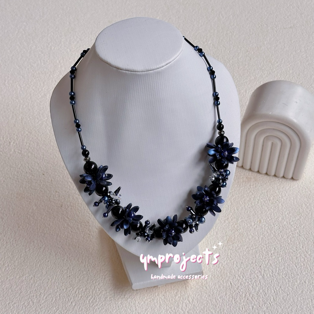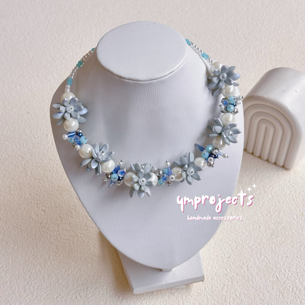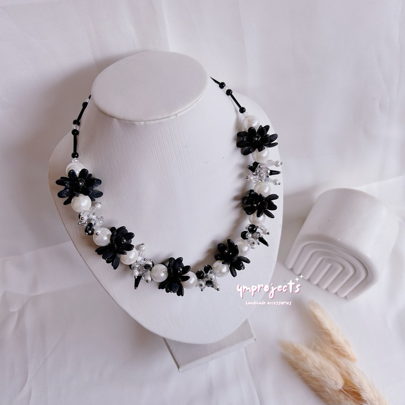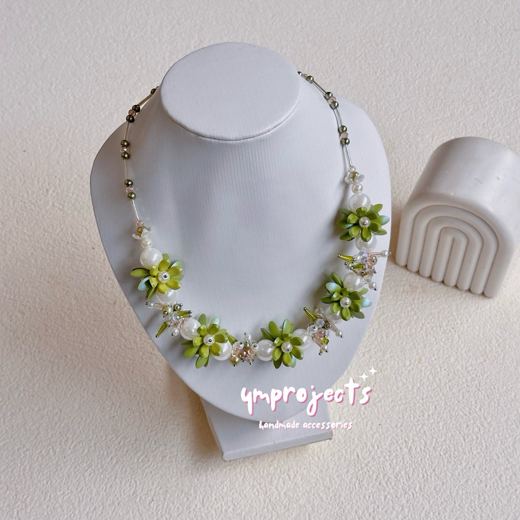 YM READY STOCK PREMIUM CRYSTAL BEADS NECKLACE - KALUNG HIJAB DAILY FASHION HANDMADE BY YMPROJECTS • CHOKER MANIK KRISTAL BUNGA MUTIARA PEMANIS BAJU POLOS KONDANGAN DAN LEBARAN | KALUNG PANJANG HIJAB NONHIJAB UNTUK KEBAYA BRIDESMAID