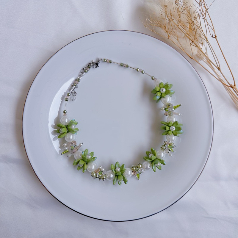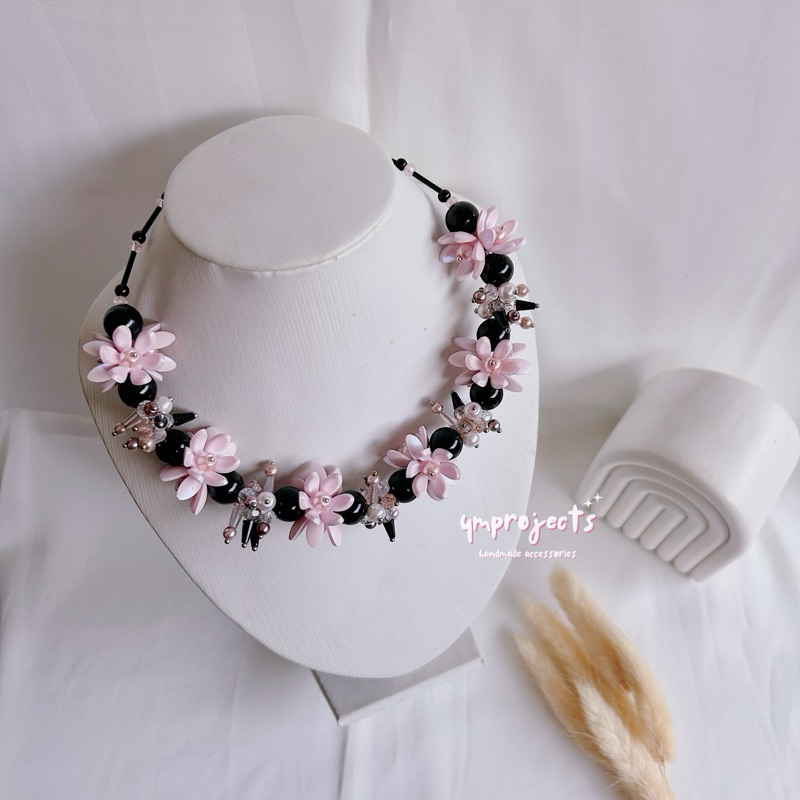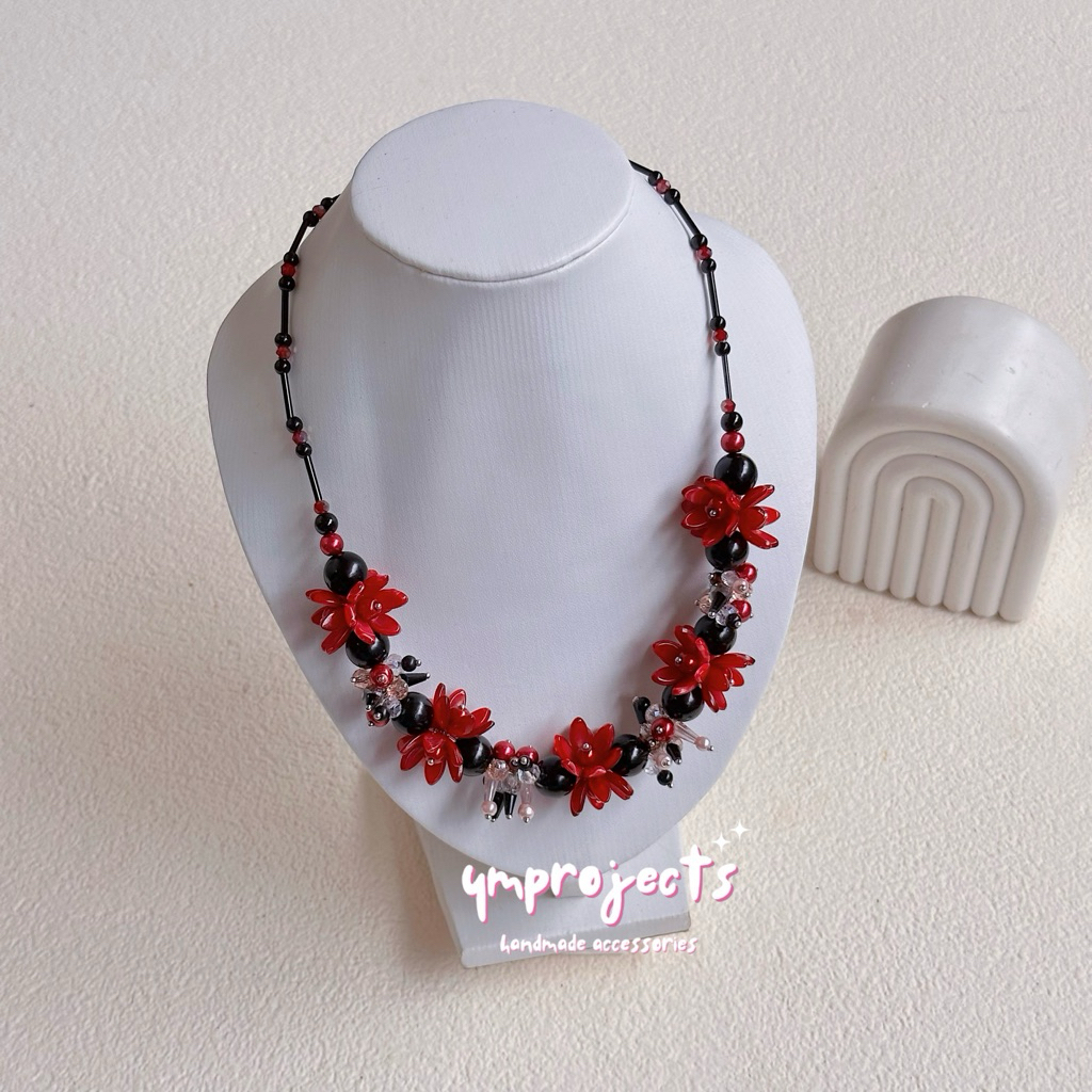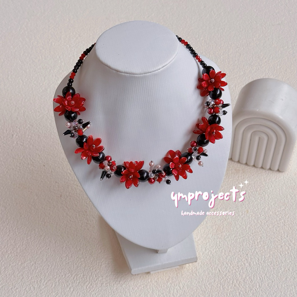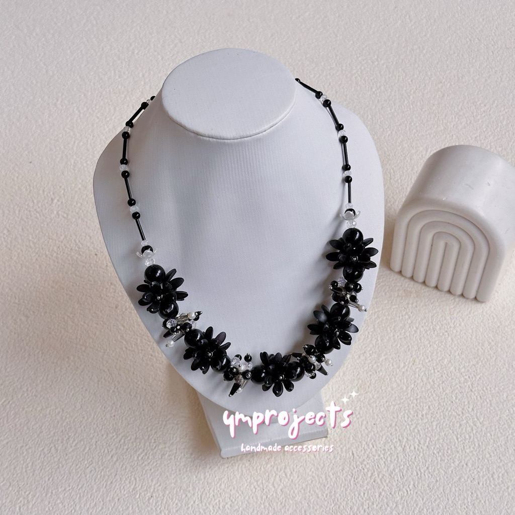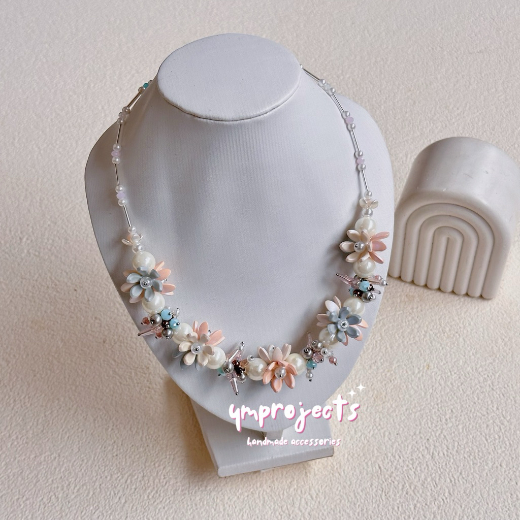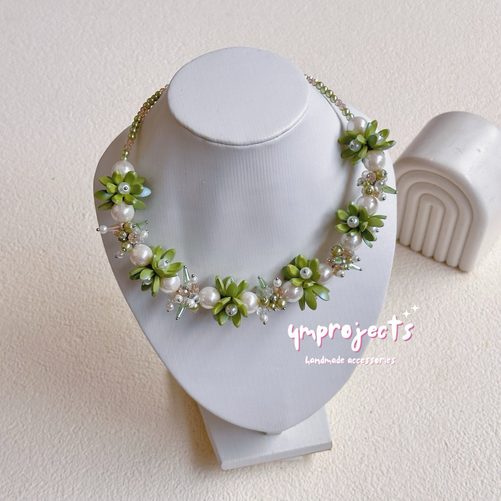 YM READY STOCK PREMIUM CRYSTAL BEADS NECKLACE - KALUNG HIJAB DAILY FASHION HANDMADE BY YMPROJECTS • CHOKER MANIK KRISTAL BUNGA MUTIARA PEMANIS BAJU POLOS KONDANGAN DAN LEBARAN | KALUNG PANJANG HIJAB NONHIJAB UNTUK KEBAYA BRIDESMAID
