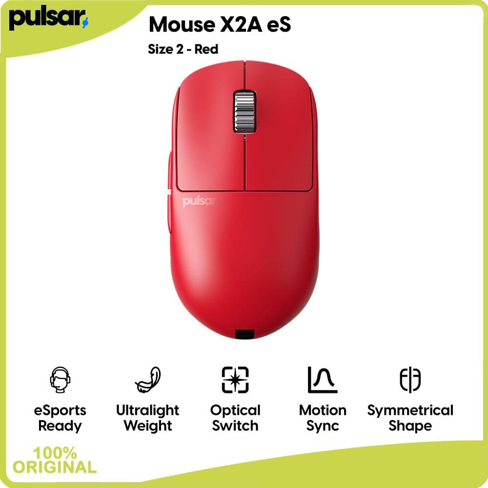 Pulsar Wireless Gaming Mouse X2A eS Size 2 Red Merah UltraLight Esports Flagship Sensor Symmetrical High-Profile Ambidextrous Palm/Claw Aerospace Alloy Wheel (support dongle 4K/8K) DPI Customization On-Device-Config