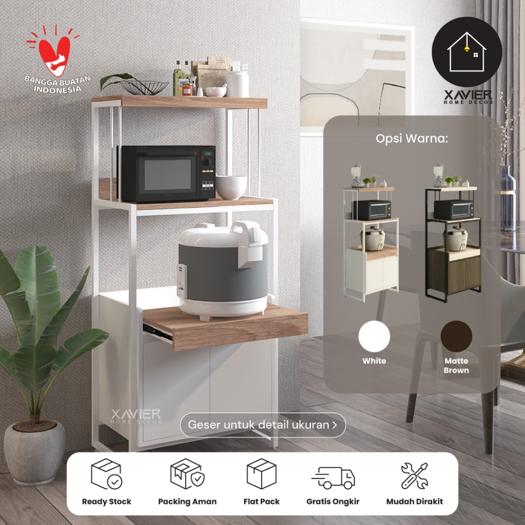 Rak Dapur Multifungsi Modern 3 Susun + Lemari / Rak Oven Microwave - CHARLIE Xavier Home Decor