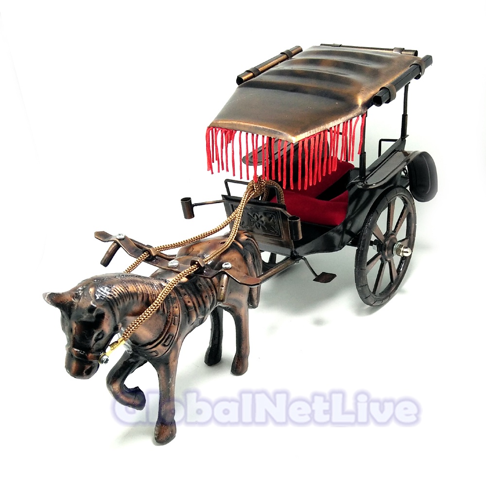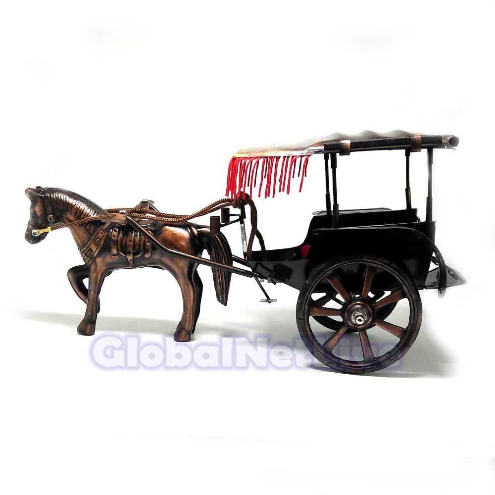 Miniatur Andong Delman Kereta Kuda Gerobak Sapi Cikar Jogja Logam & Kayu Jati