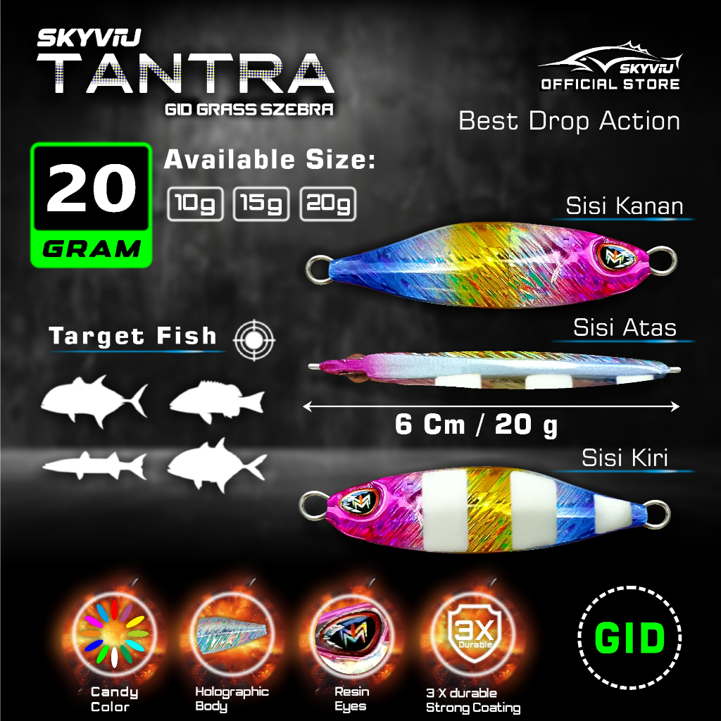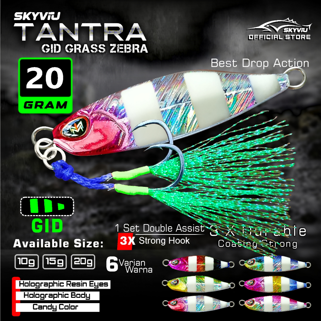 Umpan Micro Jig 20 Gram SKYVIU TANTRA GID Suket 1 Set Double Assist Hook Mikro Jig 20g 20 g Umpan Pancing Laut 20grm Menyala Malam Hari Killer Umpan Jigging 20 grmMurah