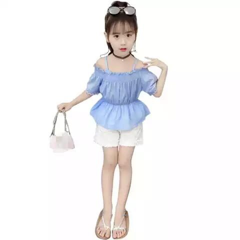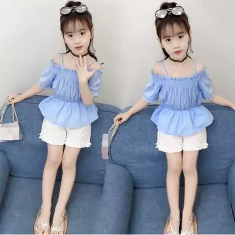 Atasan Sabrina Anak Cewek Model Korean Style / Atasan Blouse Anak Cewek Tangan Pendek Usia 1-8 Tahun