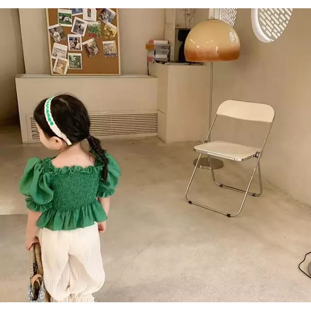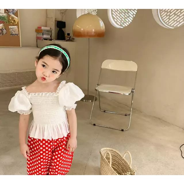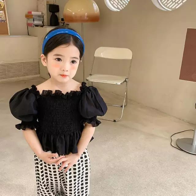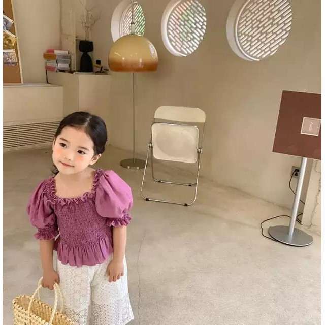 Sabrina Kerut Anak Tangan Balon Lengan Pendek Cantik / Blouse Kerut Lucu Anak Bahan Cringkel Usia 1-8th