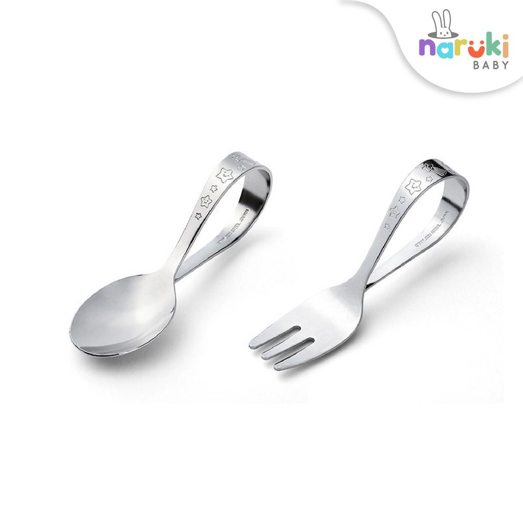 Sendok Garpu Makan Bayi Anak Stainless Feeding Spoon Fork Set Japan