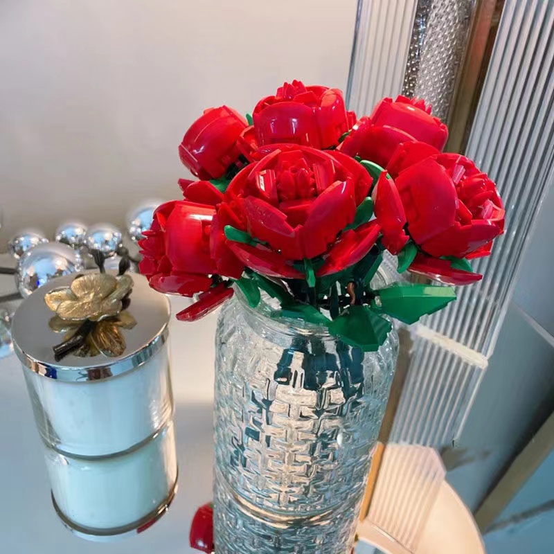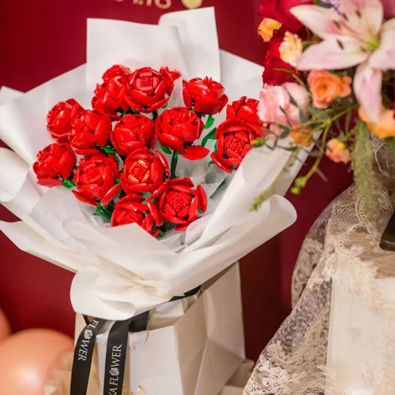 Mainan block Bunga | Flower Bouquet Botanical particle Block Bunga Rose building blocks Dekorasi