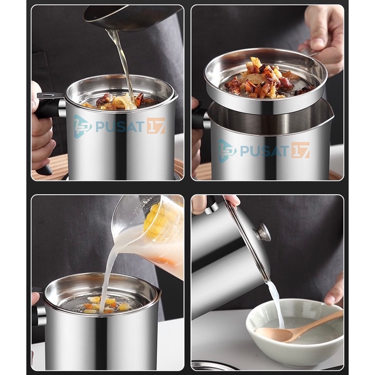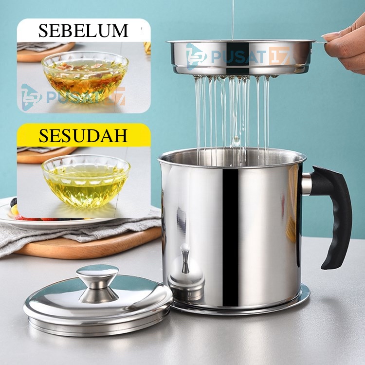OIL POT FILTER 1300ML SARINGAN STAINLESS MINYAK GORENG SISA WADAH JELANTAH TEMPAT MINYAK SARINGAN