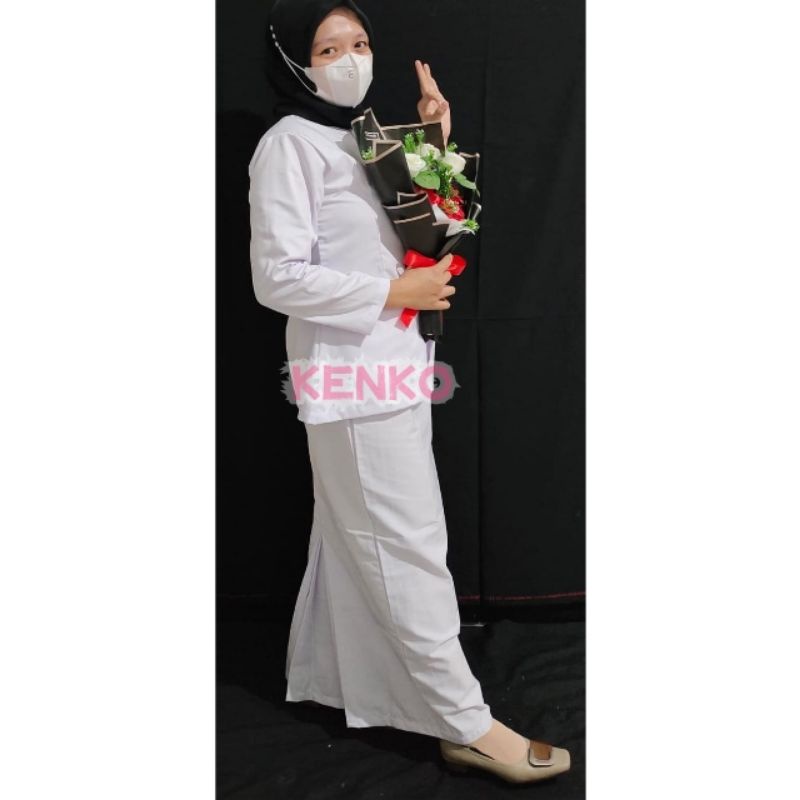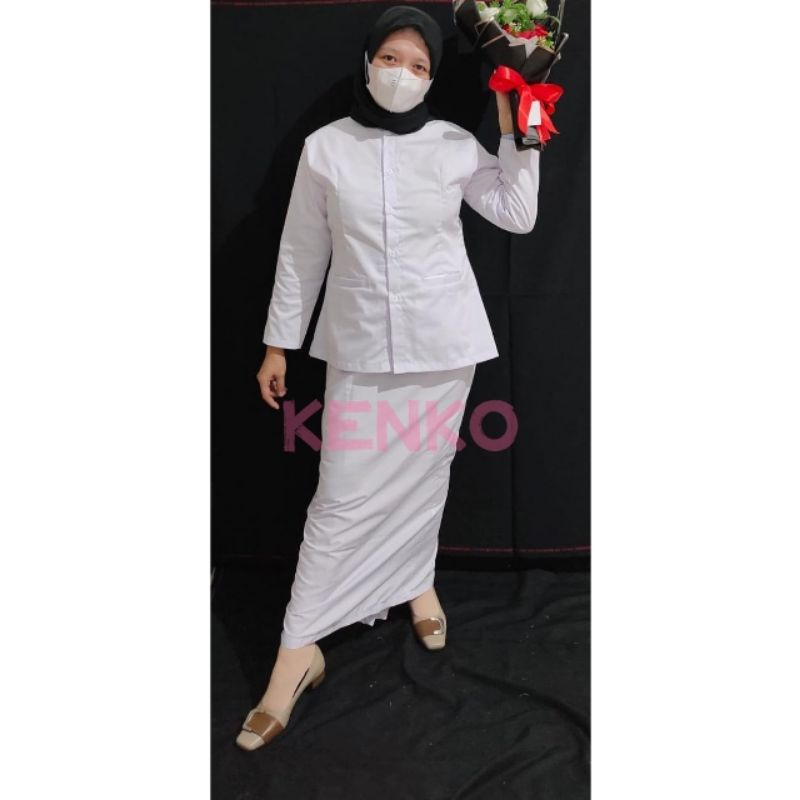 Setelan Rok Sepan Perawat Putih, Seragam Bidan Putih Dinas Rok Span Bahan American DrillPremium Import