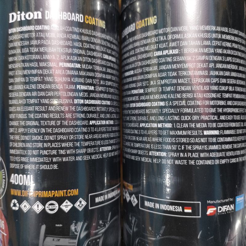 Cat Semprot DITON PREMIUM DASHBOARD COATING ORIGINAL BLACK 9800 ORANGE 9803 RED 9801 YELLOW 9802 BLUE 9804 GREY 9805 BROWN 9807 MAROON 9806 Ready Berbagai Warna Cat Diton Dashboard Coating 400ml